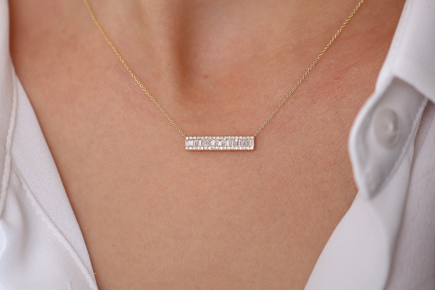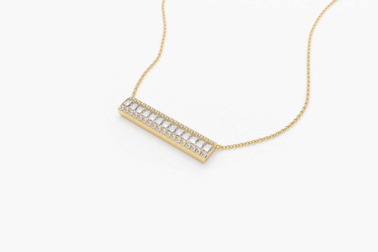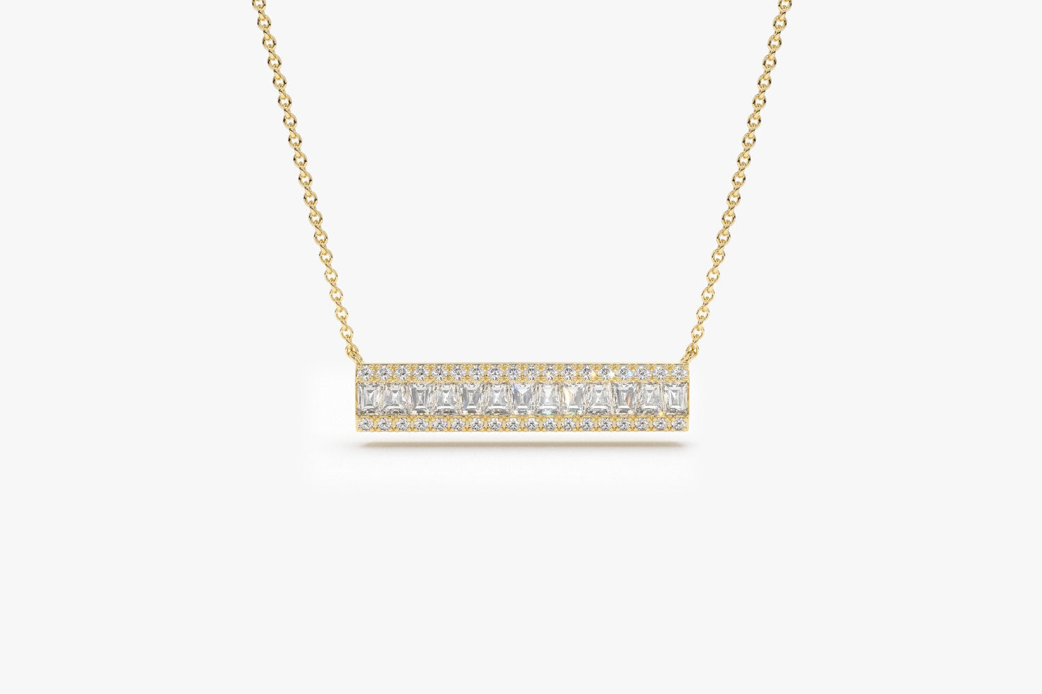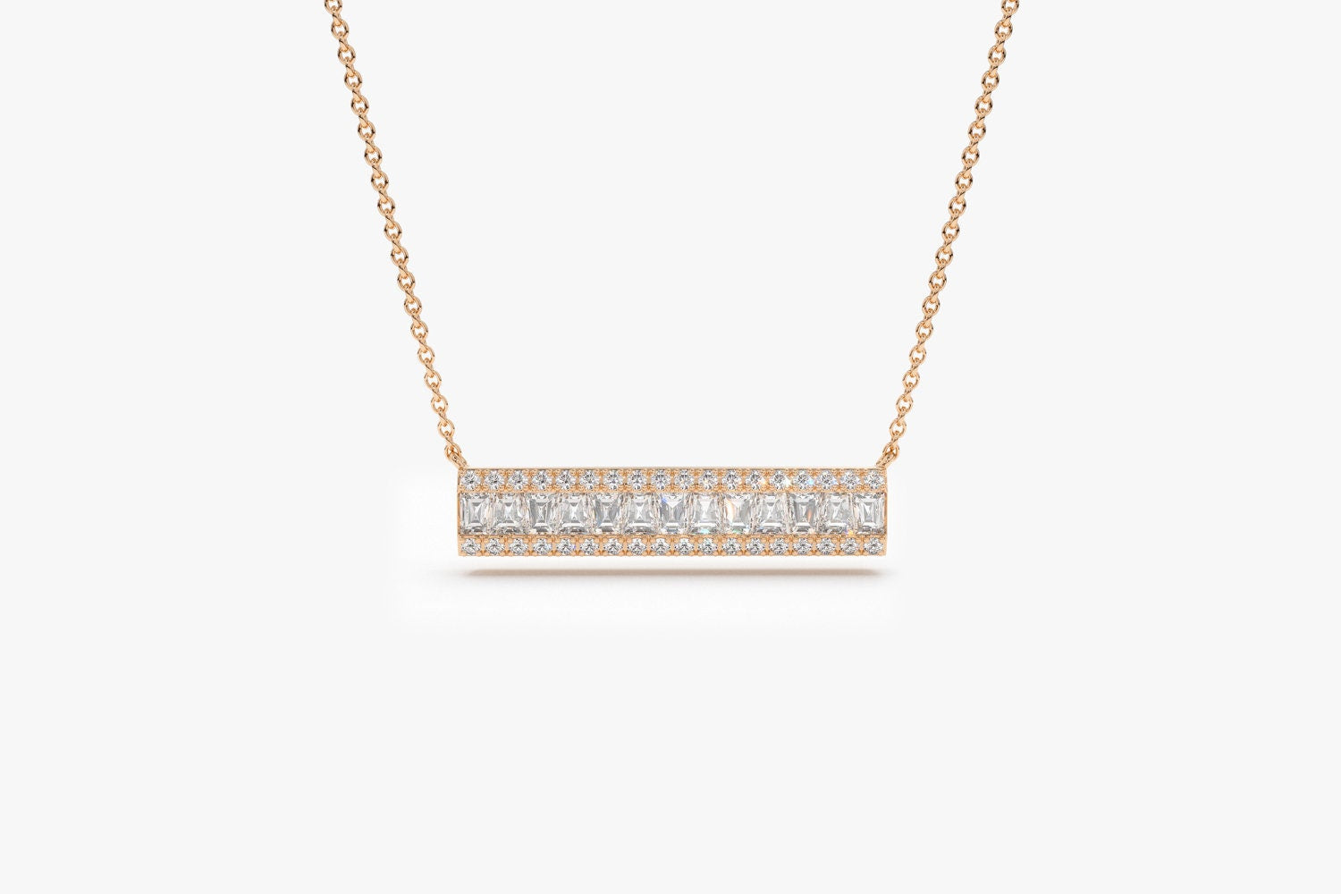 Bar Baguette Diamond Pendant Necklace for Christmas Gift