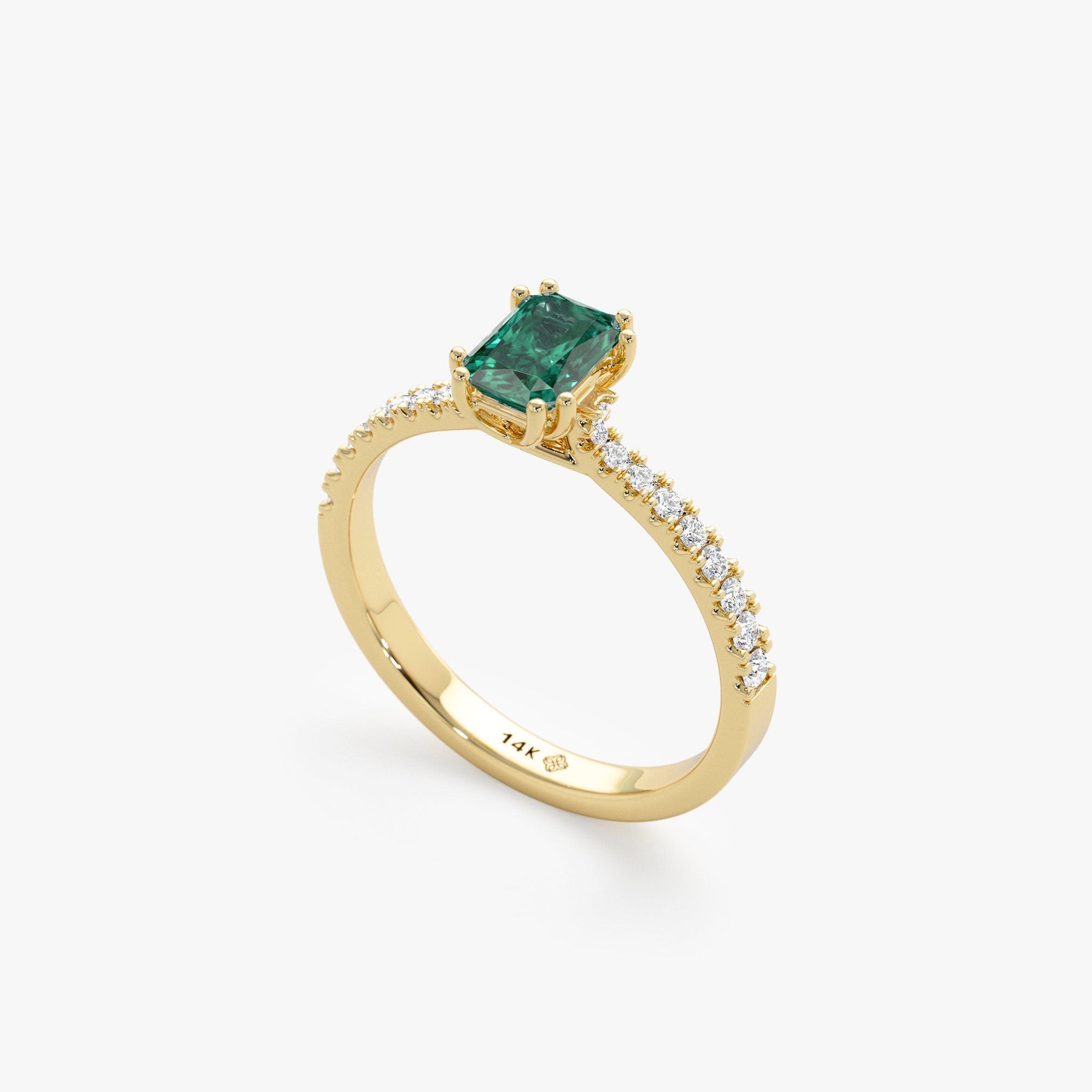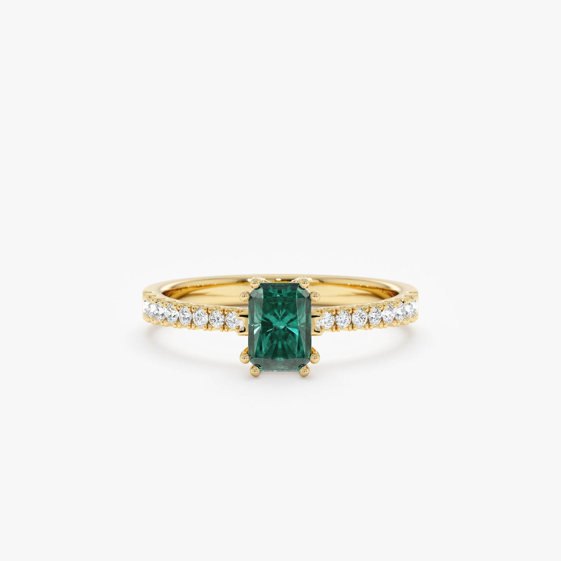 Green Emerald Cut Diamond Pave Engagement Ring for Women