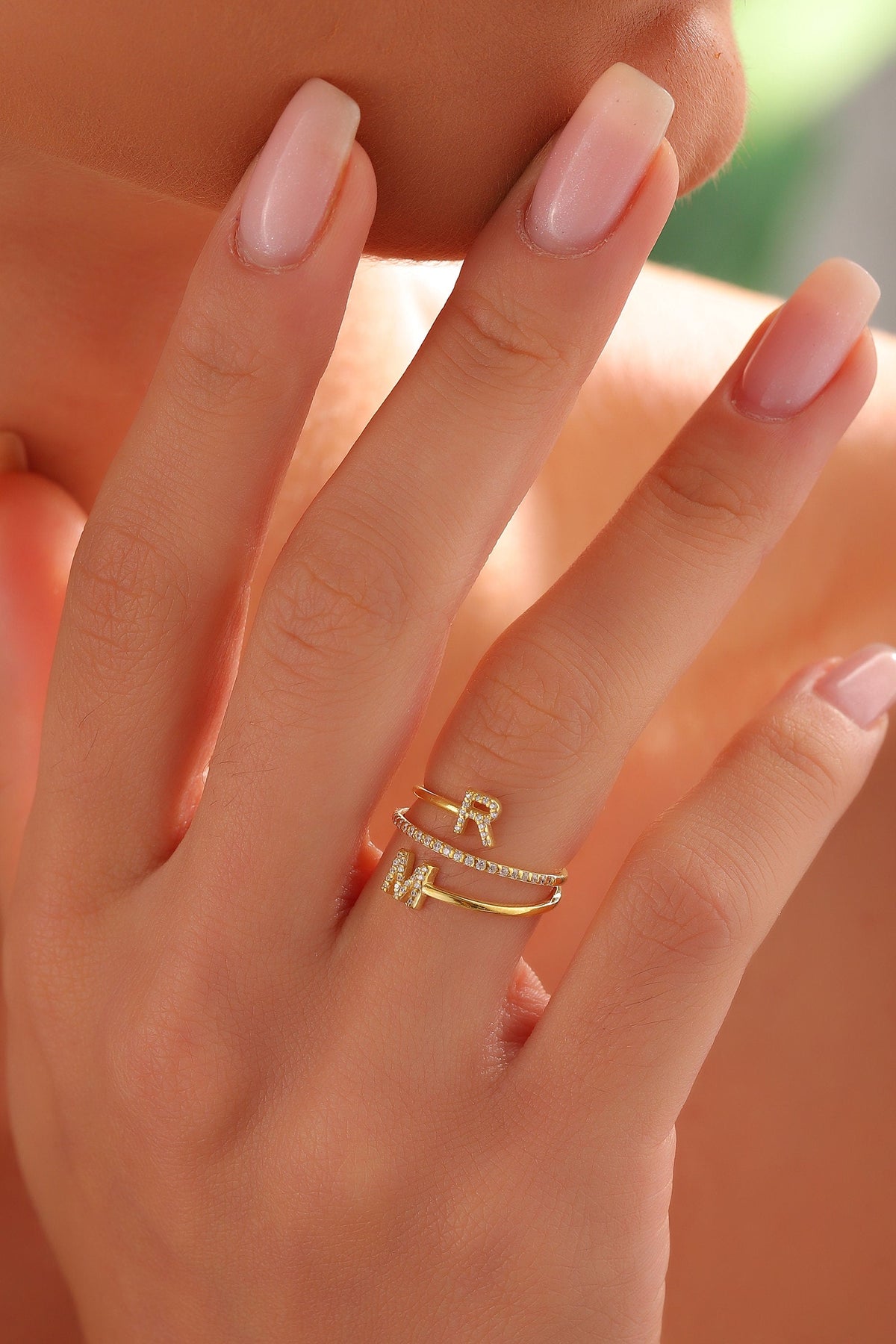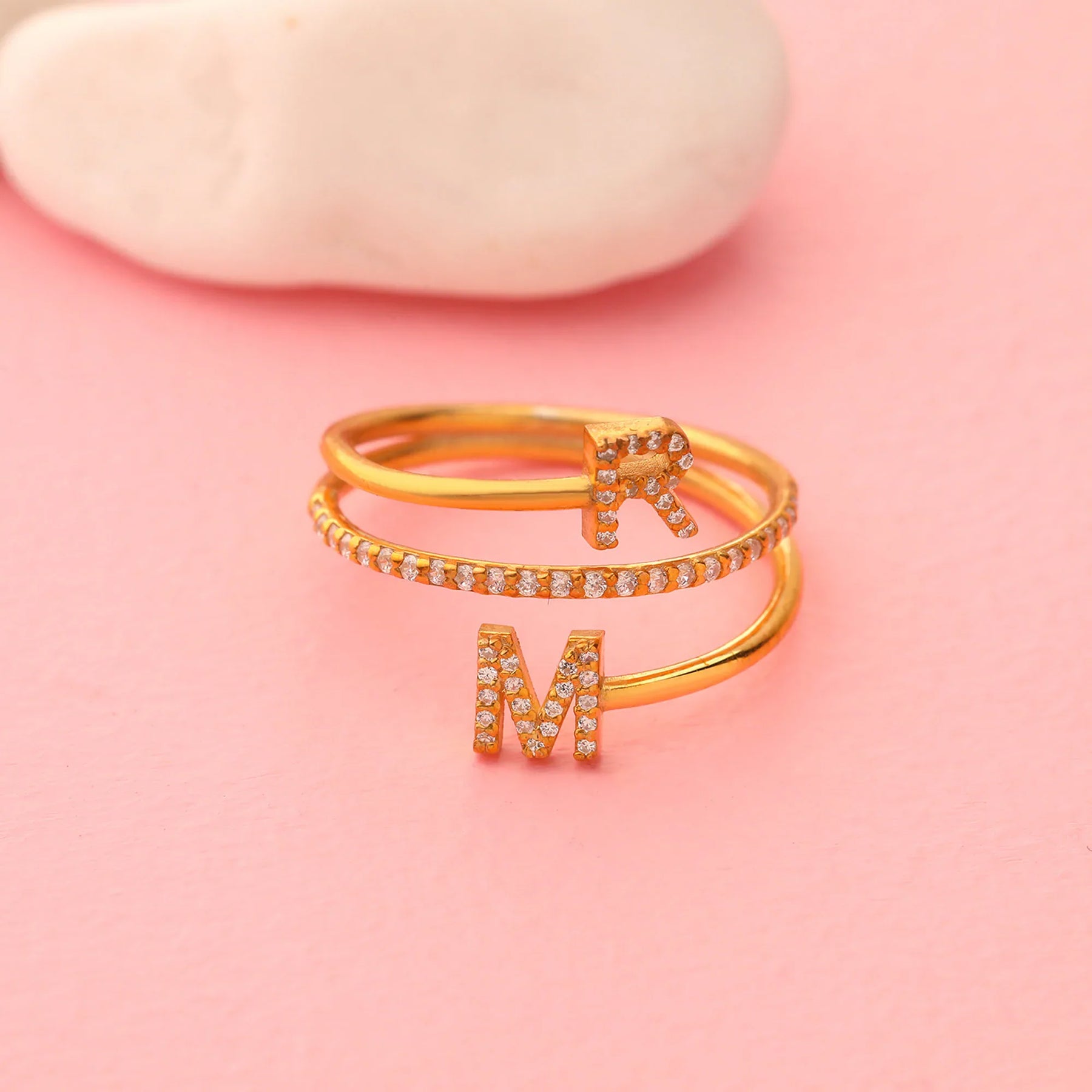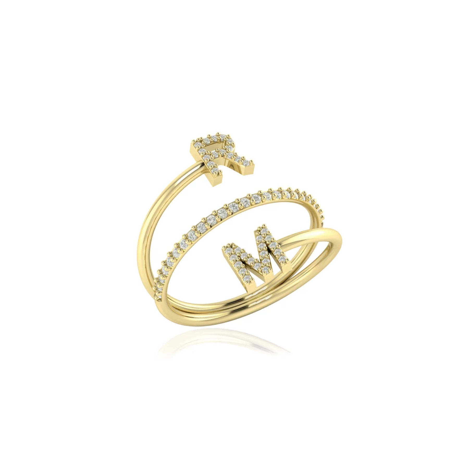 Round Cut Diamond Double Letter Band for Christmas Gift for Wife