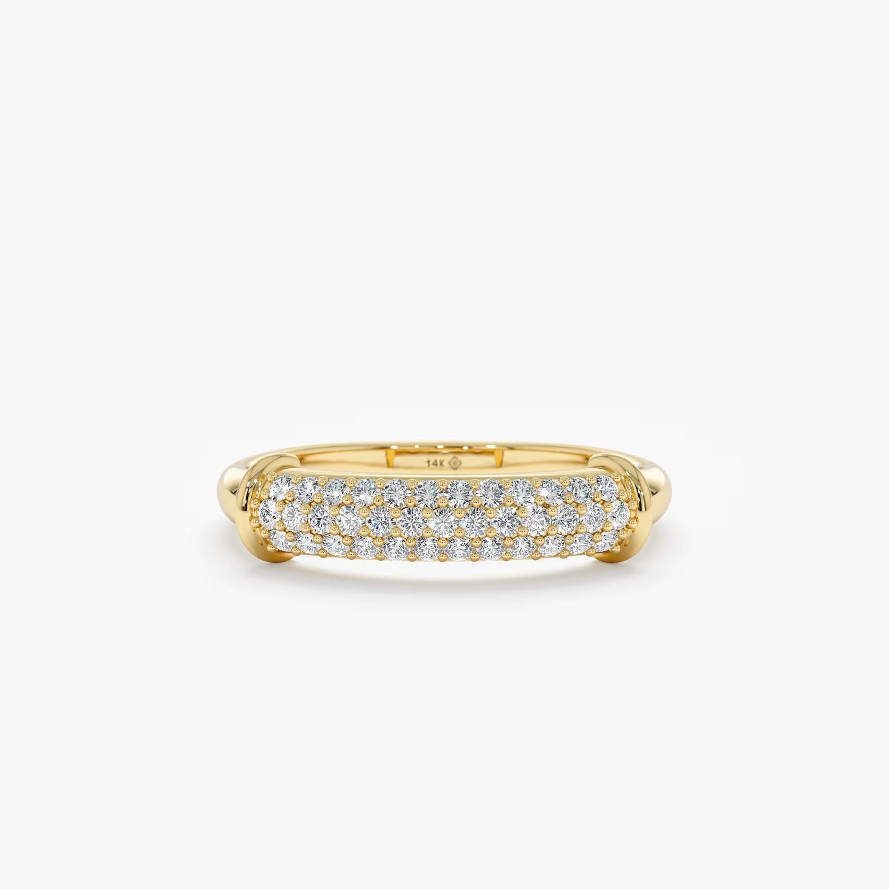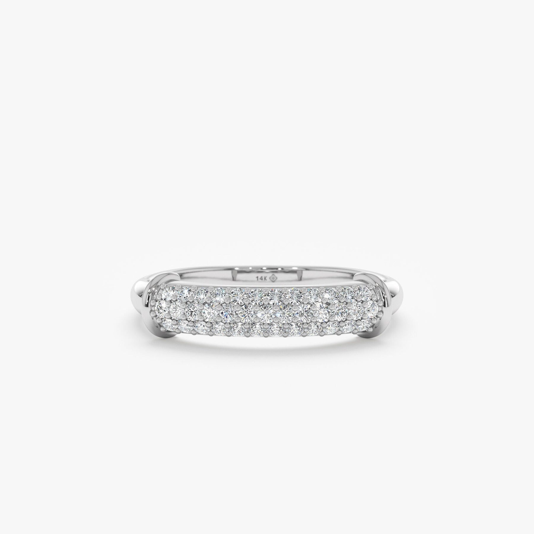 Round Cut Diamond Moissanite Paved Dome Wedding Ring in 14K Gold