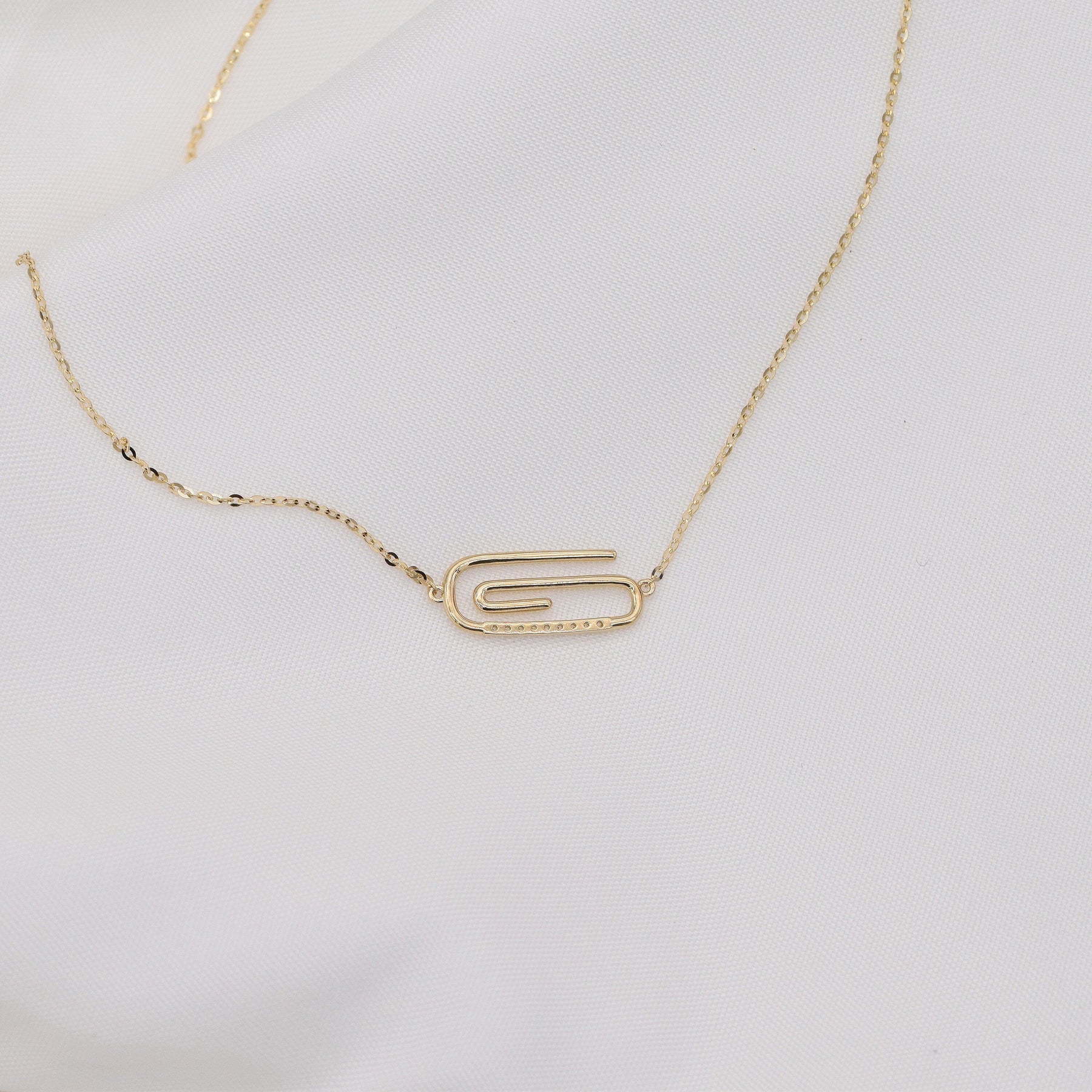 Round Cut Diamond Solid Gold Paper Clip Necklace for Women