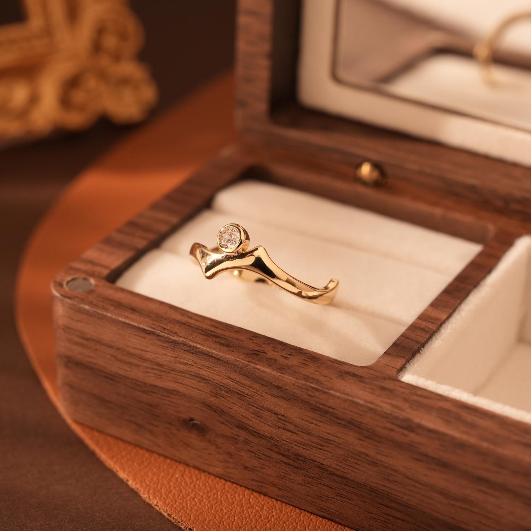 Round Cut Diamond Wave Irregular Gold Ring Gift for Her