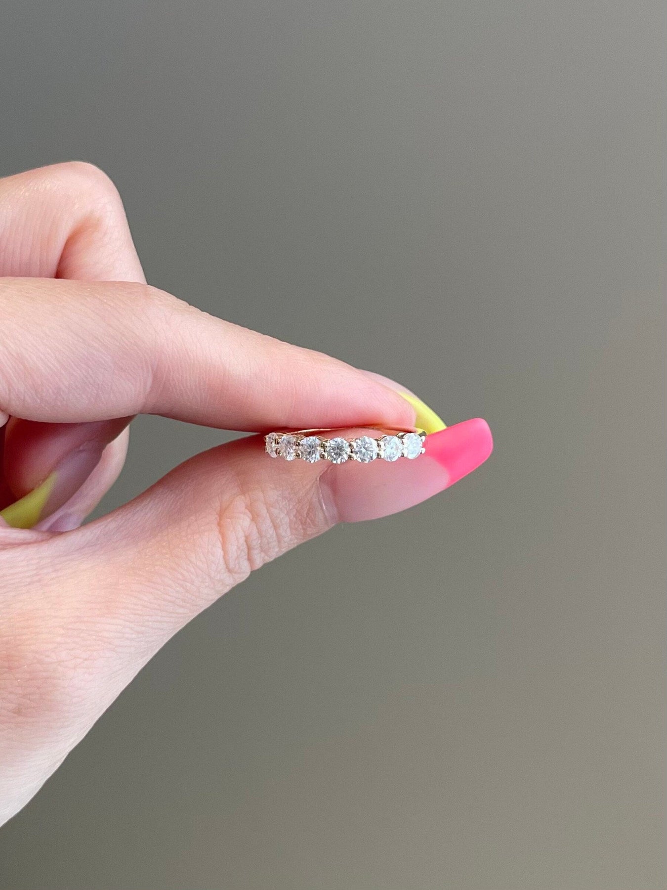 0.70 TCW Round Shaped Moissanite Seven Stones Wedding Band