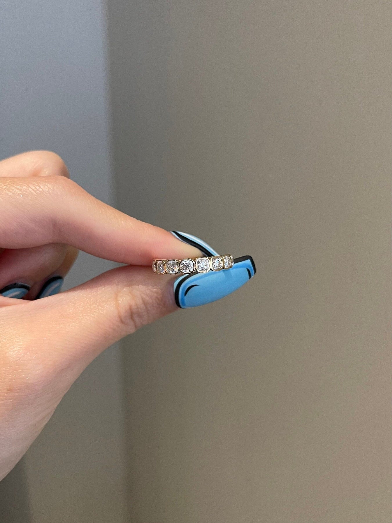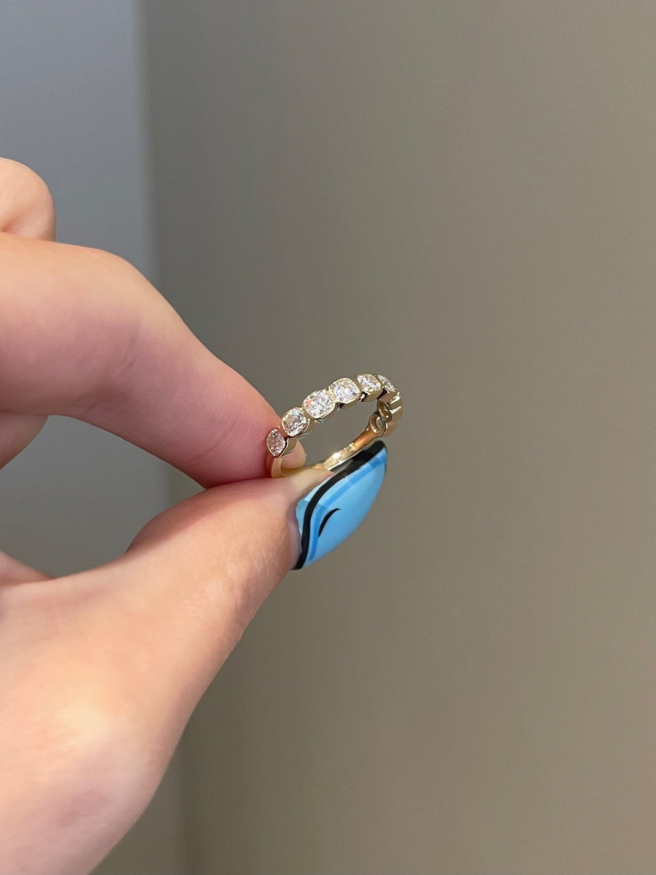 0.90 TCW Cushion Shaped Moissanite Half Eternity Wedding Band