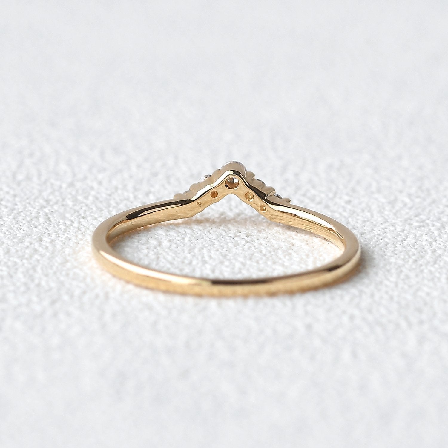 ✥ Elevate your wedding ensemble with our 1.3 MM Round Brilliant Cut V Curved Moissanite Wedding Band, a delicate masterpiece that effortlessly marries timeless elegance with modern design. The slender band features precisely set 1.3mm round brilliant-cut moissanite stones, creating a captivating curve that complements your engagement ring or stands gracefully on its own. The V-shaped design adds a touch of sophistication and uniqueness to this wedding band, symbolizing the union of two individuals on a shared journey. Ethically sourced moissanite ensures both a dazzling sparkle and a conscious choice for a symbol of everlasting commitment. This exquisite wedding band is a testament to the refined beauty found in simplicity, promising a lifetime of grace and enduring love.