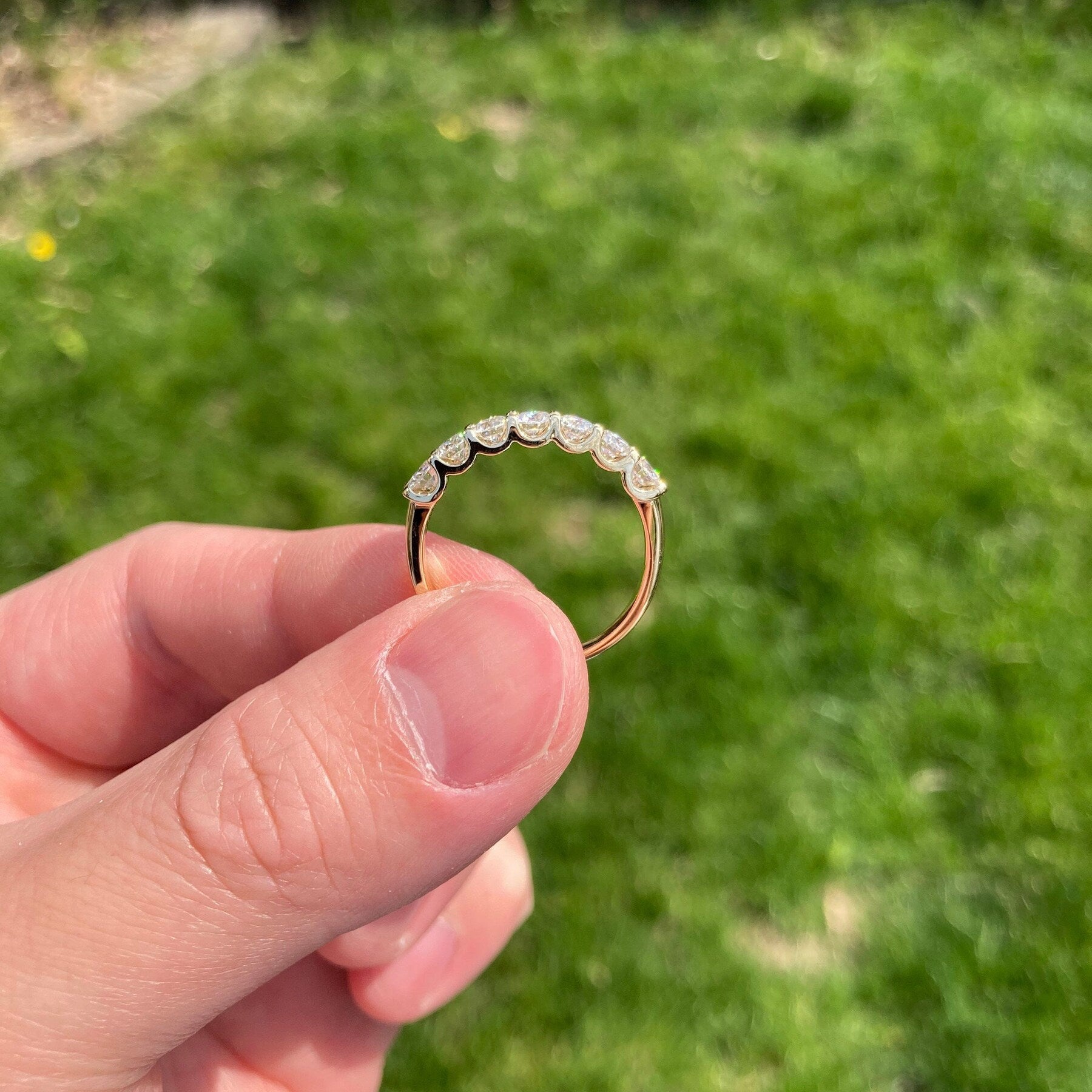 1.40 TCW Round Shaped Moissanite Five Stones Wedding Band