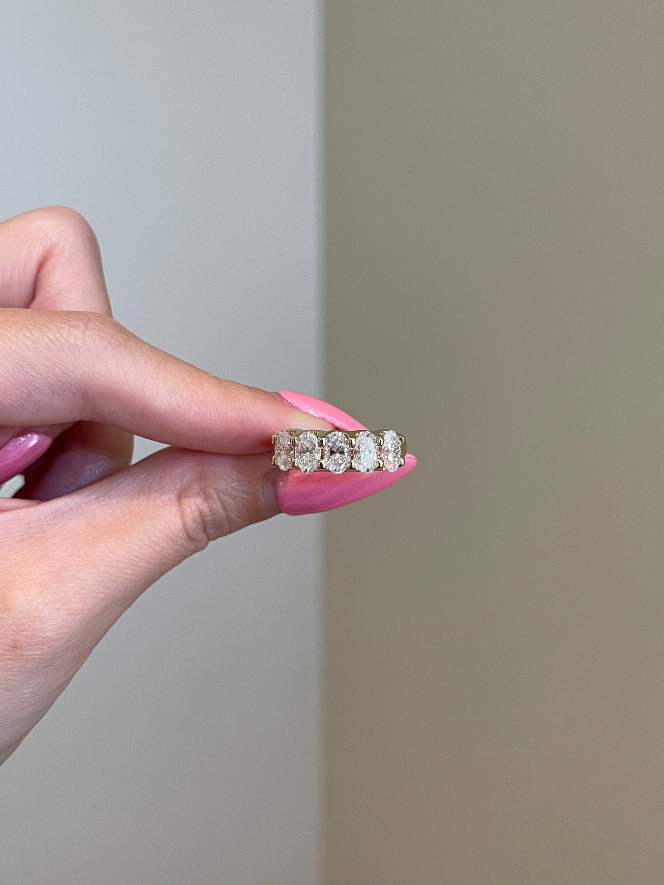 2.50 TCW Oval Shaped Moissanite Five Stones Wedding Band