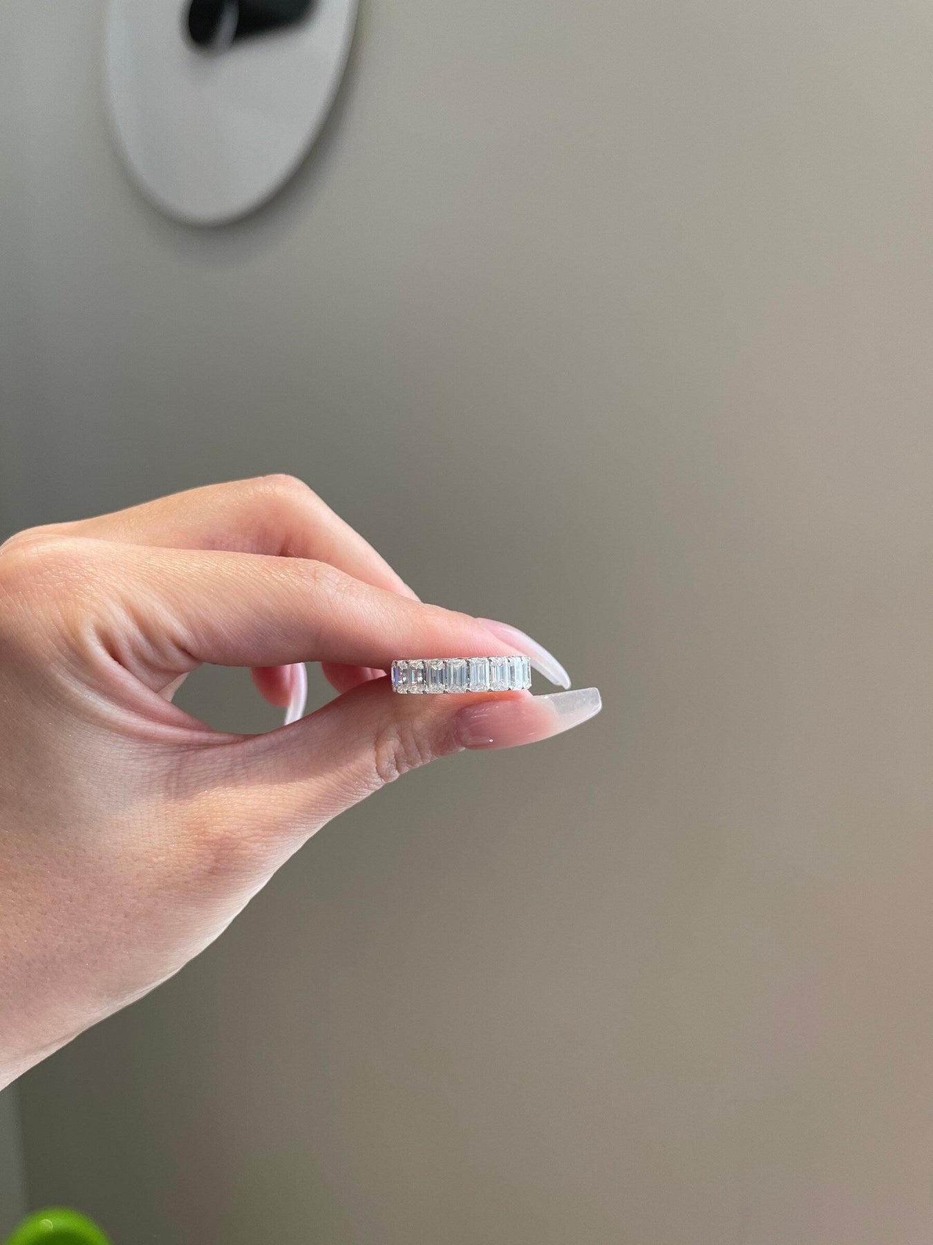 2.70 TCW Emerald Shaped Moissanite Half Eternity Wedding Band