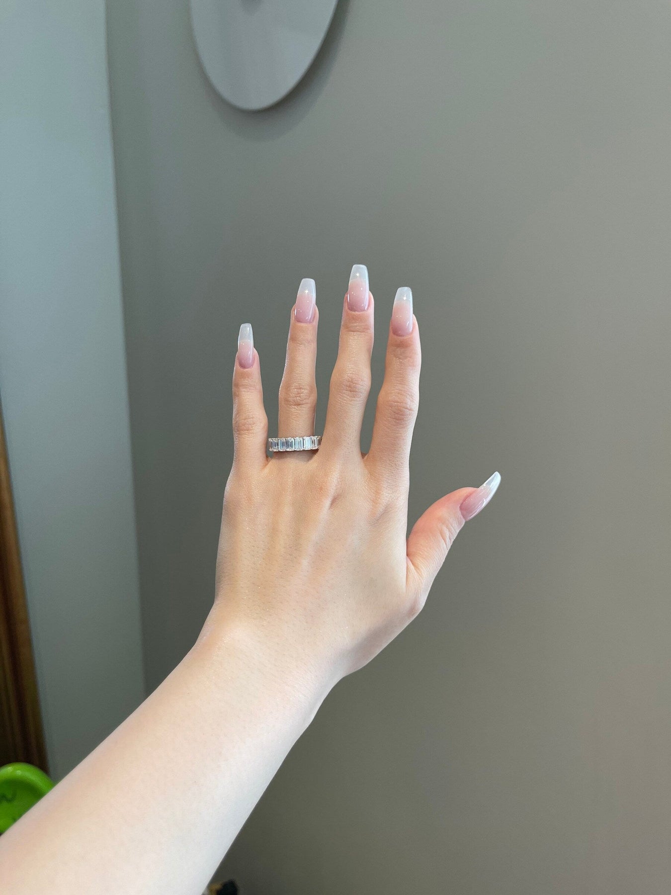 ? The Band Shown in the Picture Holds Beautiful 2.70 TCW Emerald Moissanite.