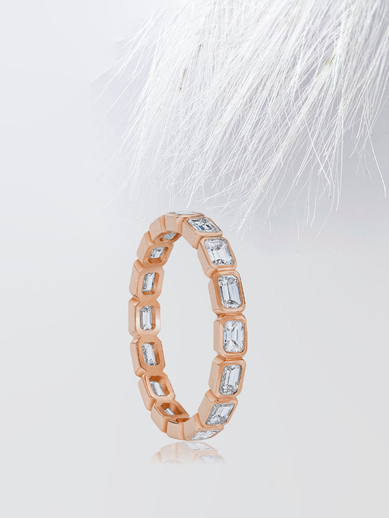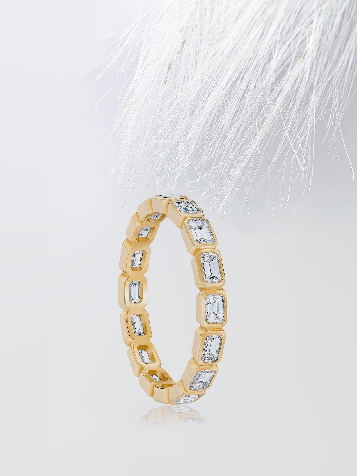 Emerald Cut Bezel Diamond Wedding Band For Women
