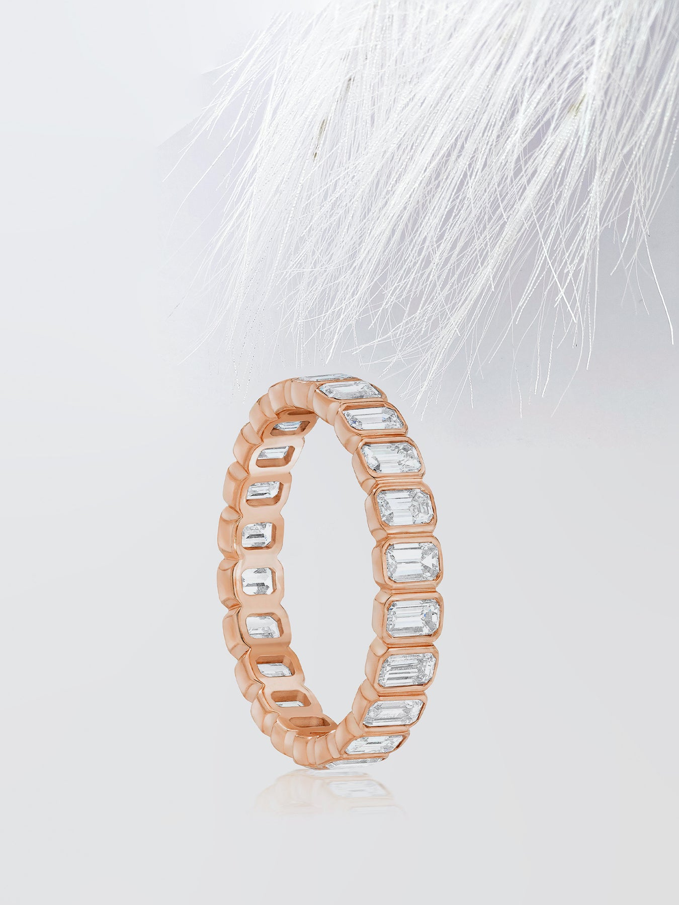 Emerald Cut Bezel Eternity Diamond Wedding Band For Women