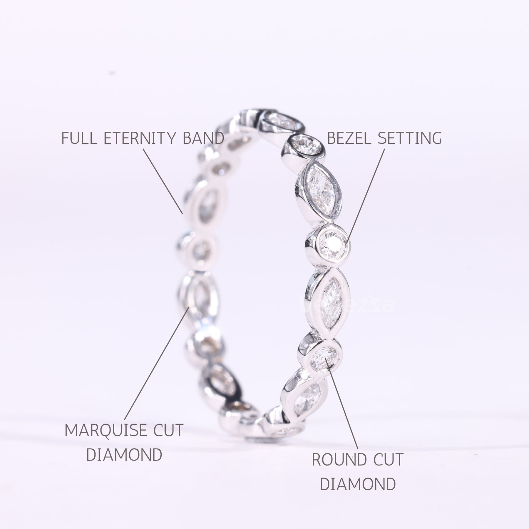 Marquise & Round Cut Alternative Bezel Setting Eternity Wedding Band