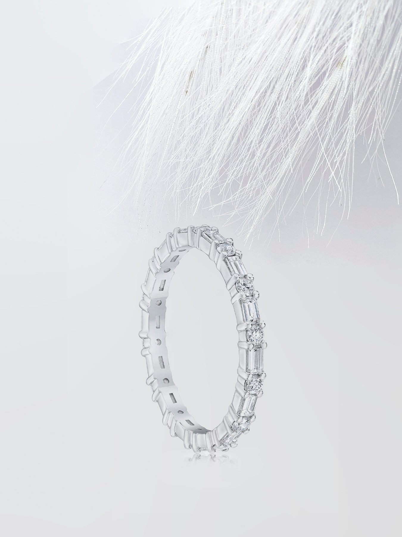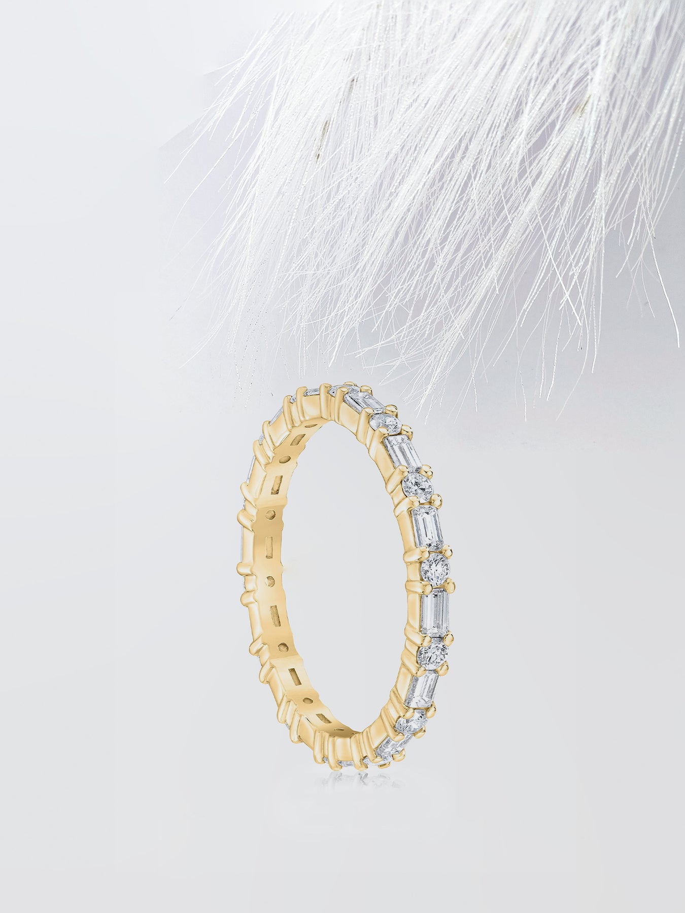 Round & Baguette Cut Eternity Diamond Wedding Band For Women