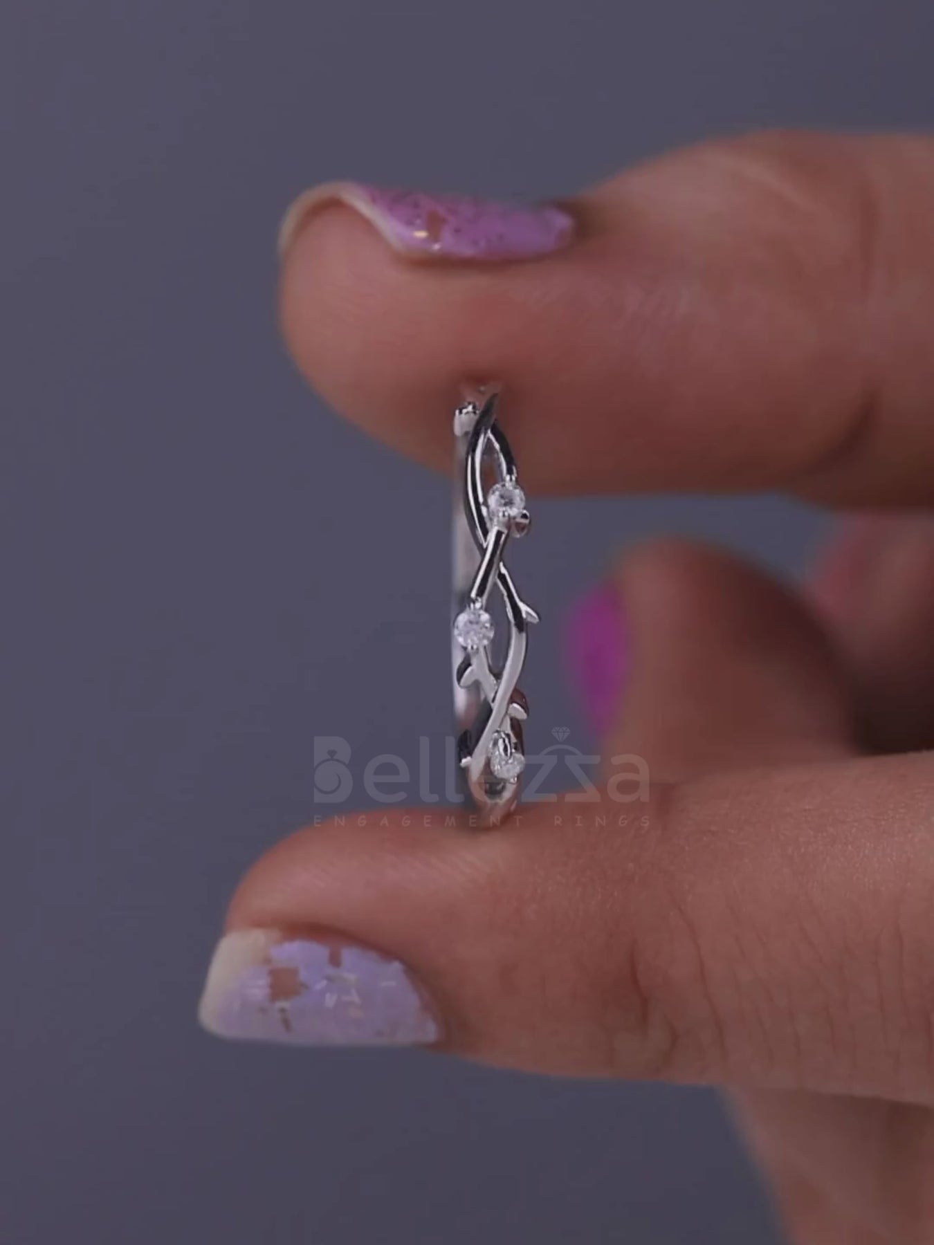 Round Brilliahnt Cut Nature Inspired Moissanite Wedding Band