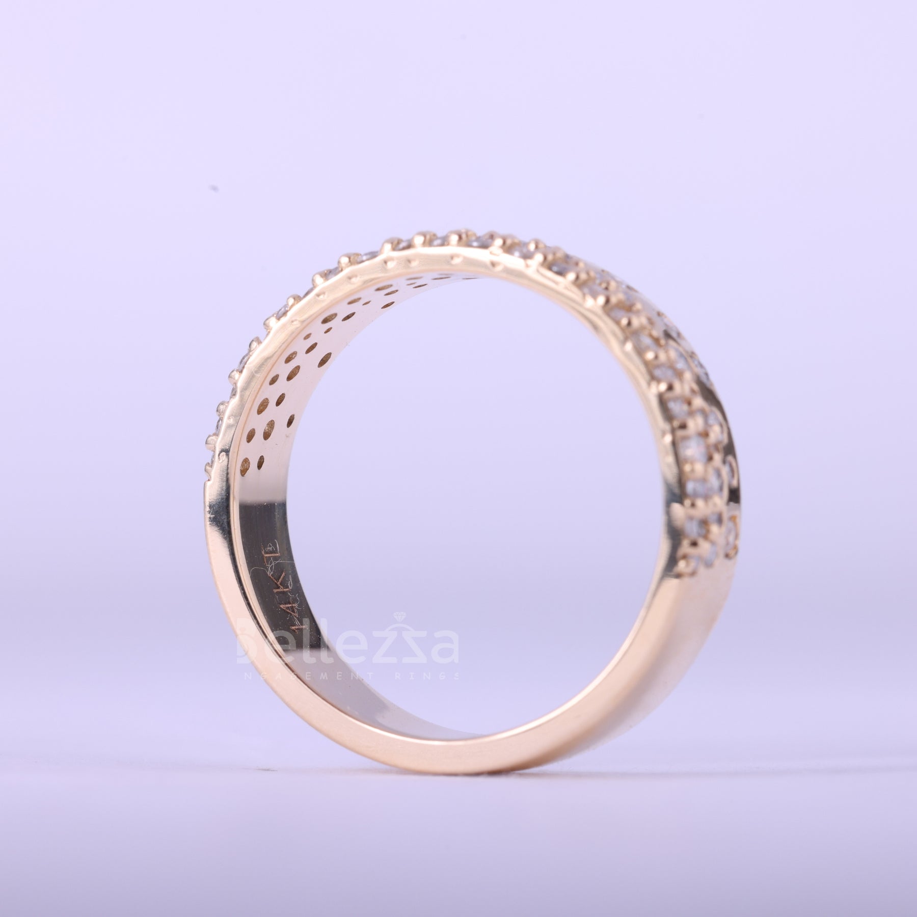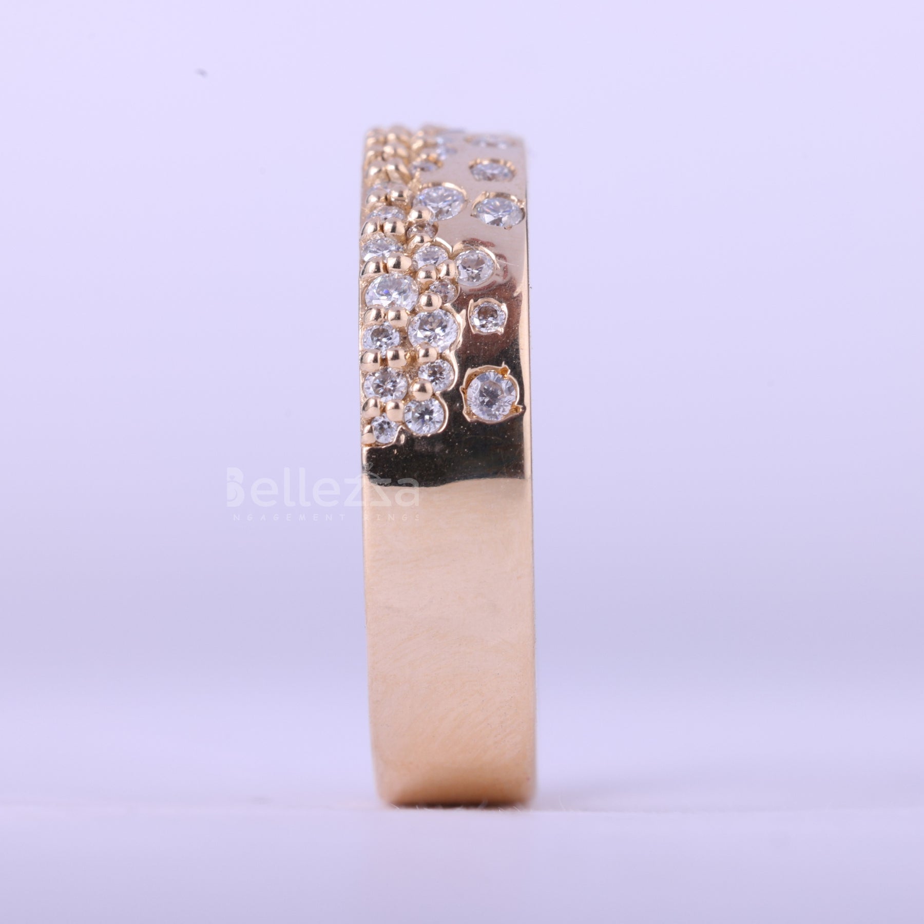 ✥The image features a radiant Round Cut Cluster Diamond Flush Set Moissanite Wedding Band, designed to blend brilliance with everyday comfort. Sparkling Round Cut Moissanite Diamonds are elegantly arranged in a Cluster Flush Setting, creating a seamless, modern look. This Wedding Band offers a low-profile design perfect for daily wear, while still delivering a luxurious sparkle. Crafted for those who love elegance with practicality, it pairs beautifully with engagement rings or stands out on its own. A refined Moissanite Diamond Band that symbolizes timeless love with contemporary charm.