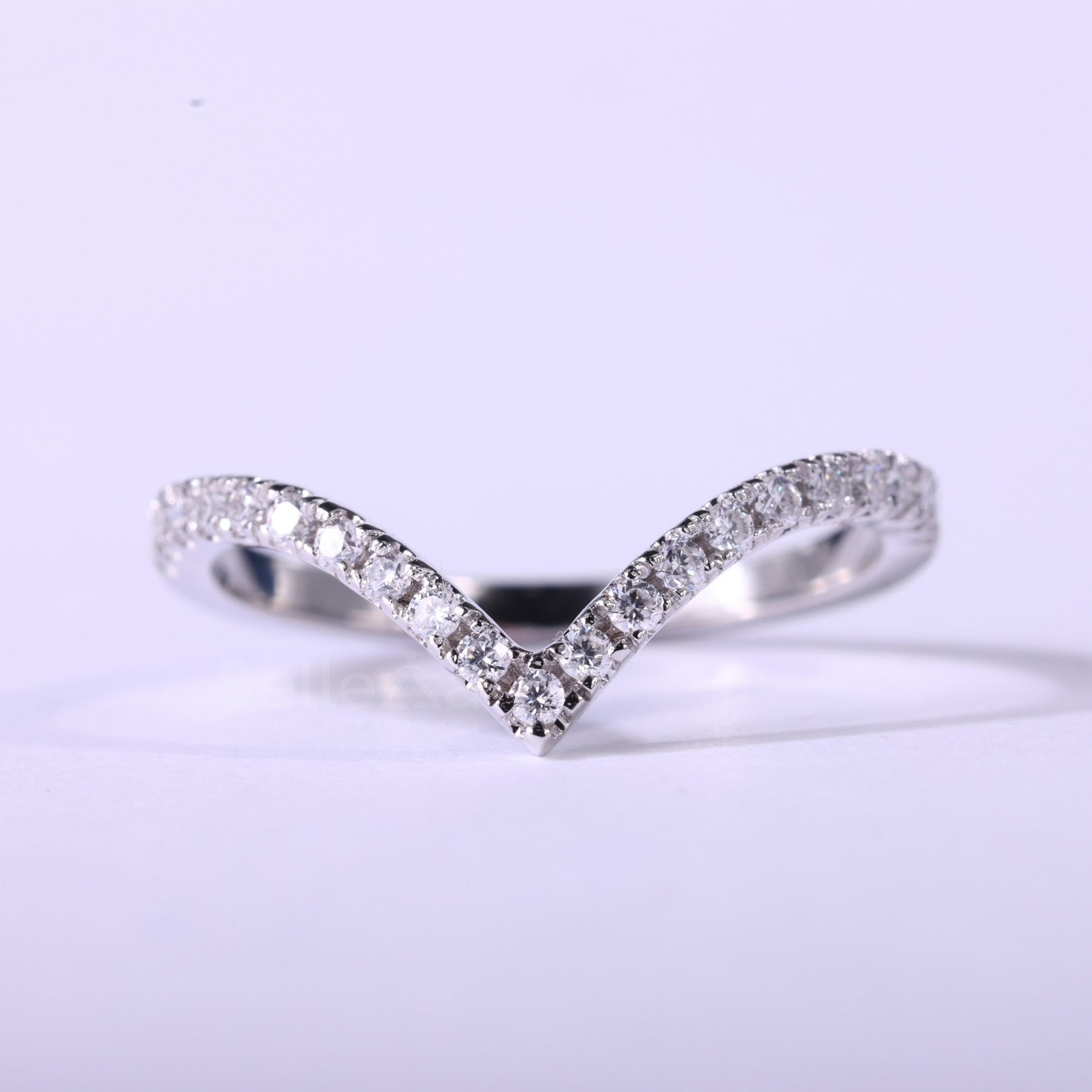 ✥This elegant image features the Round Cut Curved Moissanite Wedding Band, a timeless design that adds sparkle and grace to any bridal set. The brilliant round cut moissanite stones deliver exceptional fire and brilliance, enhancing the band’s classic appeal. Its curved design allows a seamless fit alongside engagement rings, creating a harmonious and elegant look. Crafted as a premium moissanite wedding band, it offers diamond-like radiance with ethical and affordable appeal. Perfect for brides seeking a sophisticated yet comfortable style, this band balances beauty with everyday wearability. Celebrate your love with this trending, radiant wedding band that exudes lasting elegance.