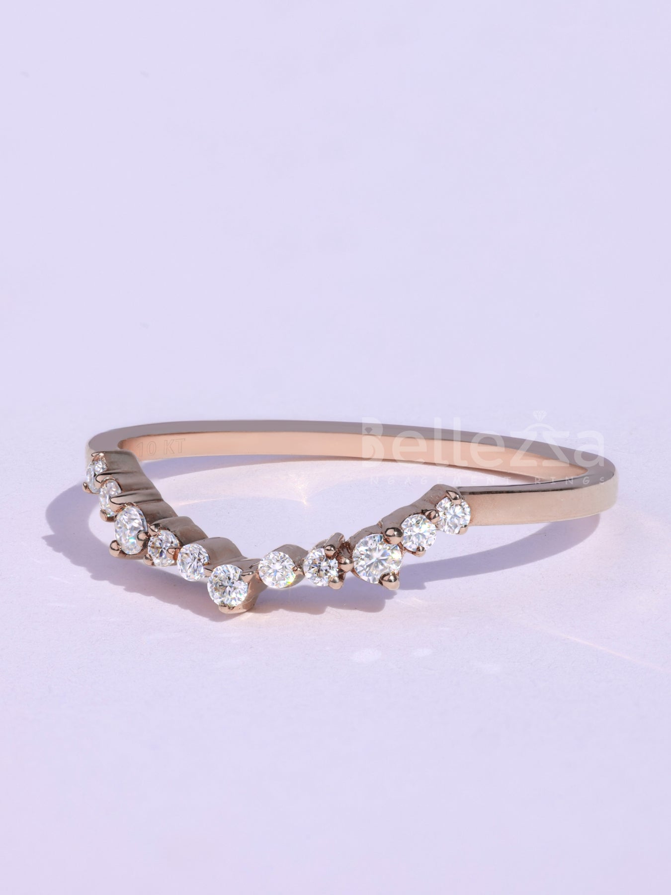✥Celebrate graceful beauty with this Round Cut Curved Moissanite Wedding Band for Her. Designed to fit perfectly alongside your engagement ring, the curved silhouette adds a soft, elegant touch. Featuring sparkling round-cut moissanite stones, it radiates brilliance with timeless charm. Expertly crafted in your choice of precious metal for a refined, lasting finish. Each stone is hand-selected for clarity, fire, and symmetry. Ideal for stacking or wearing solo. A delicate and radiant band that completes your love story.