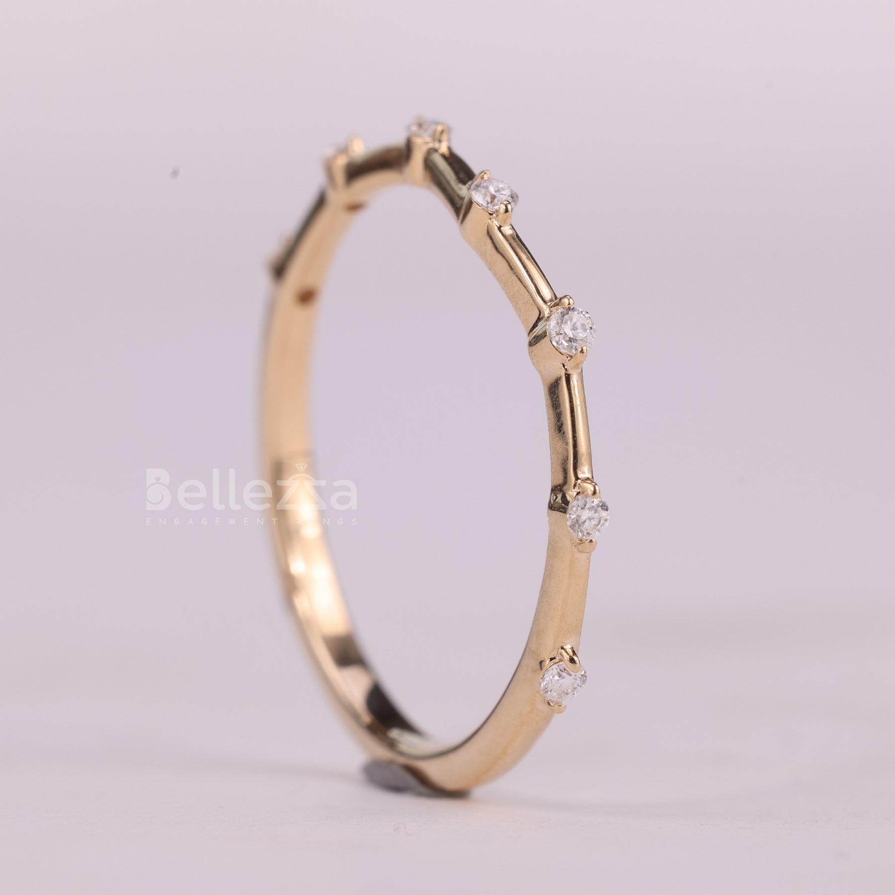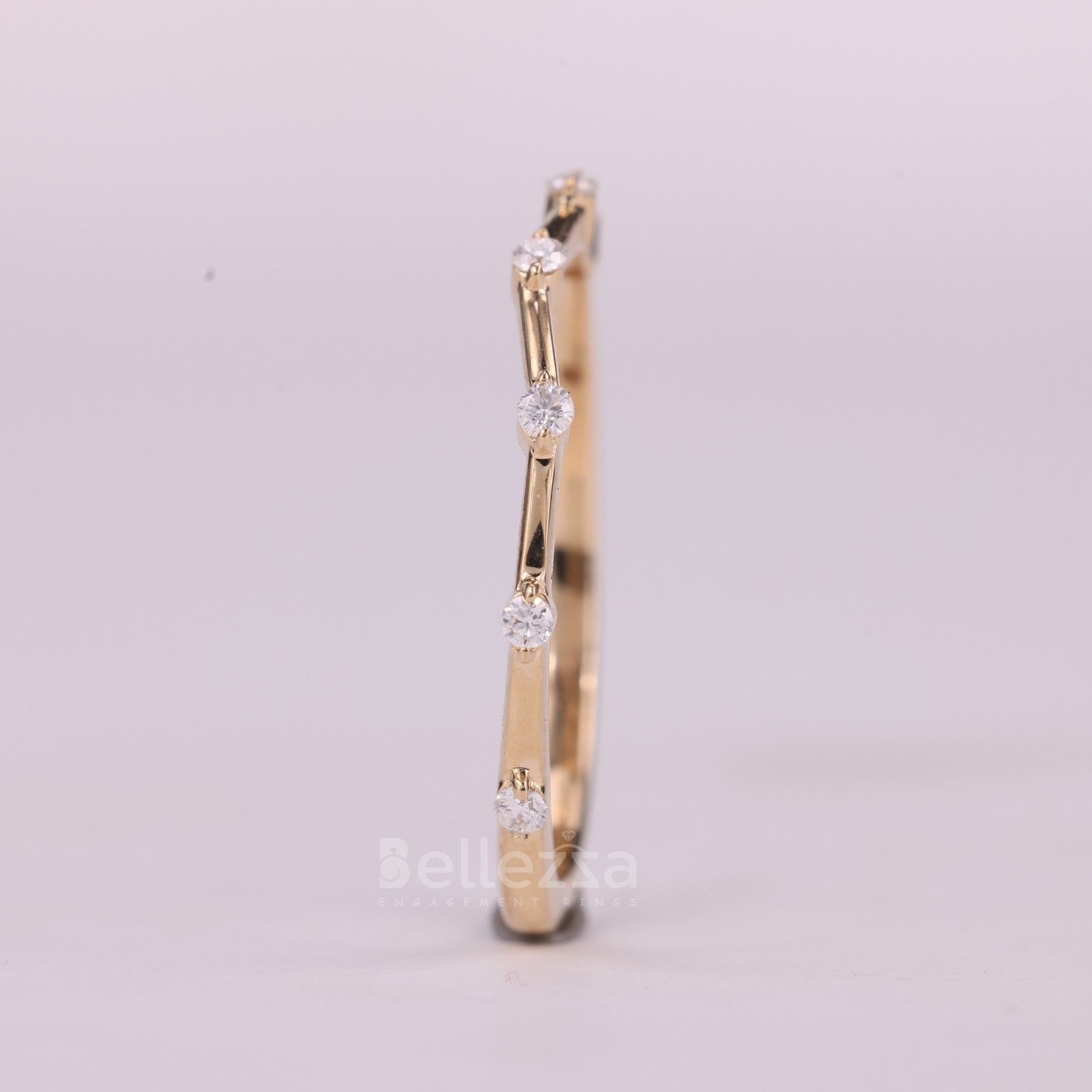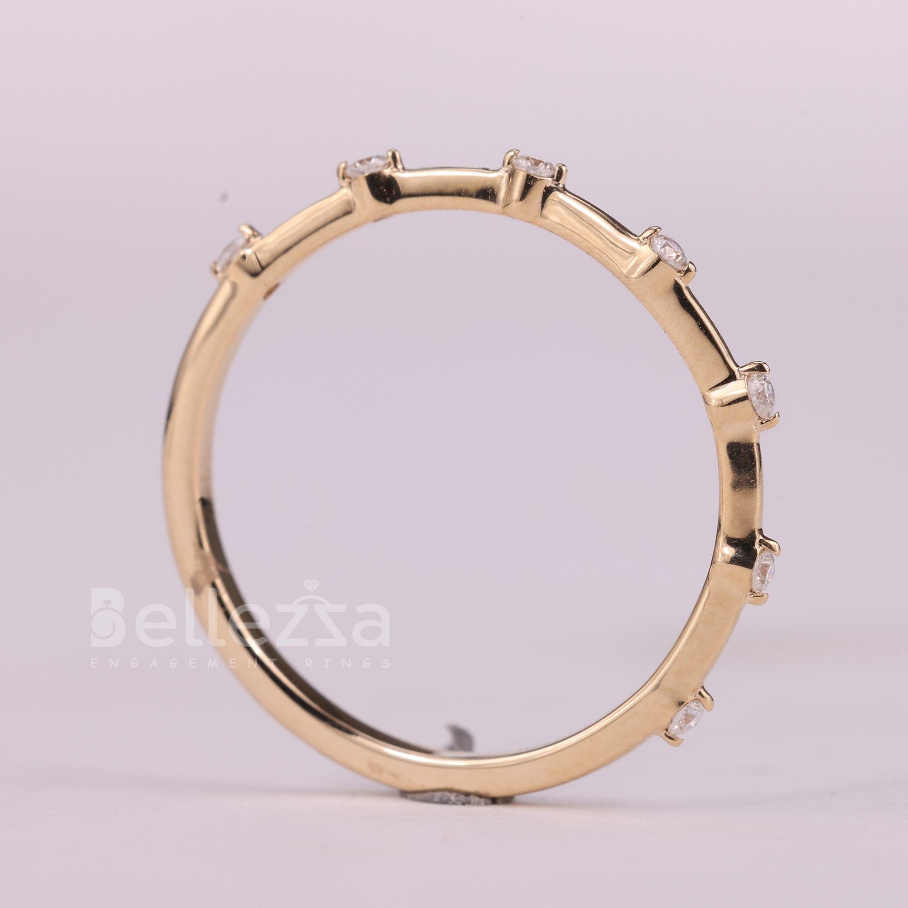 Round Cut Diamond Moissanite Petite Pave Setting Wedding Band