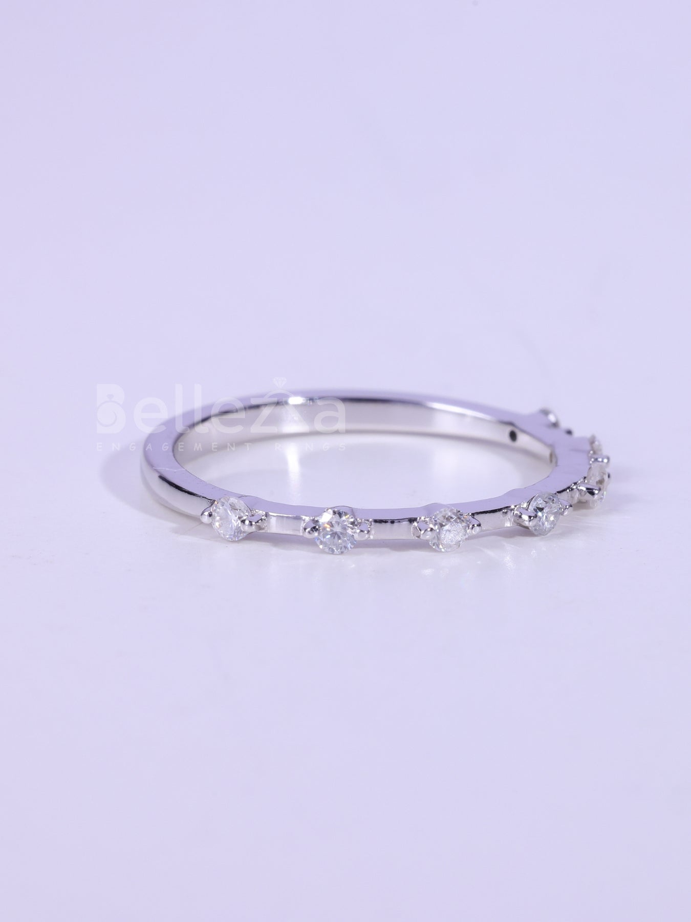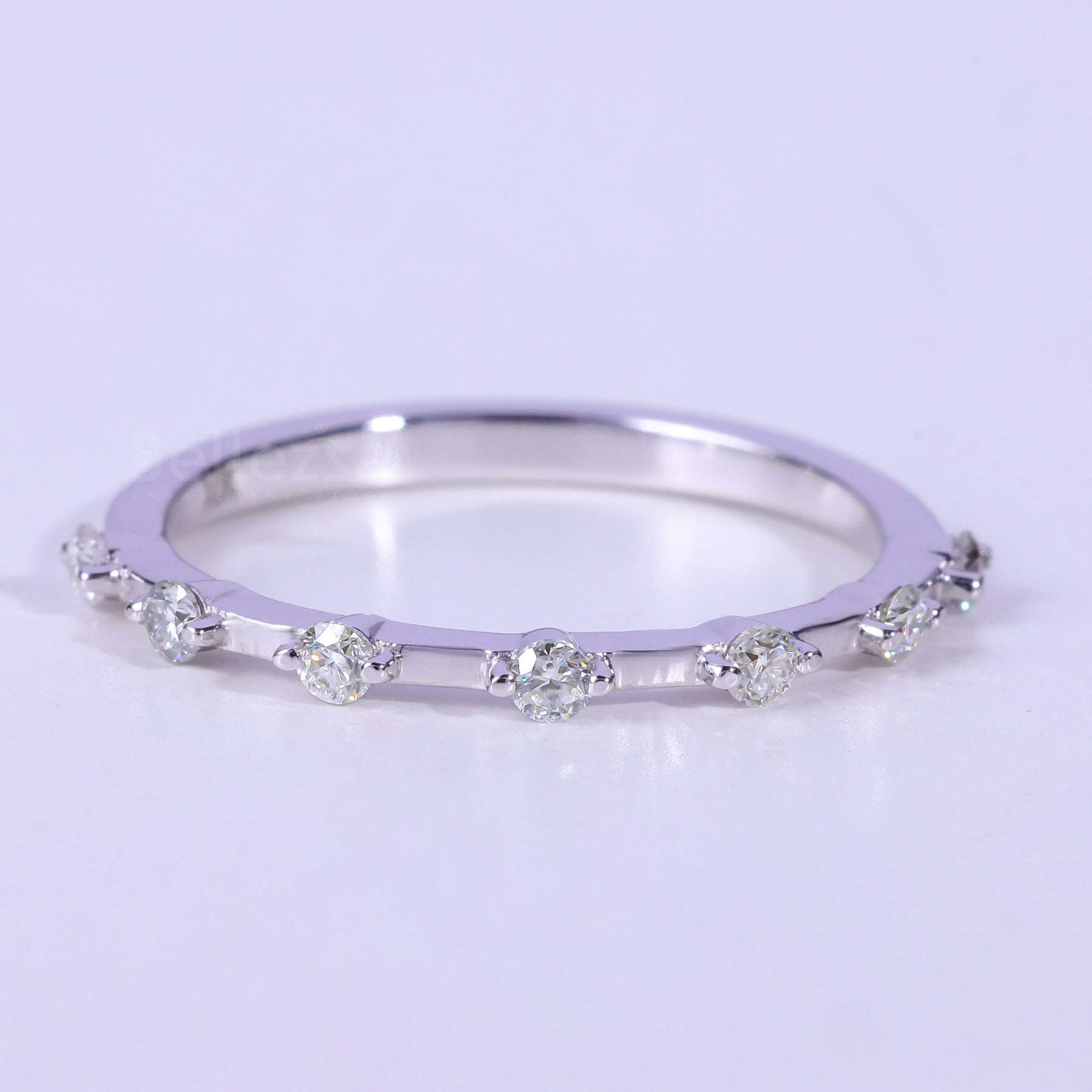Round Cut Diamond Petite Pave Setting Moissanite Wedding Band