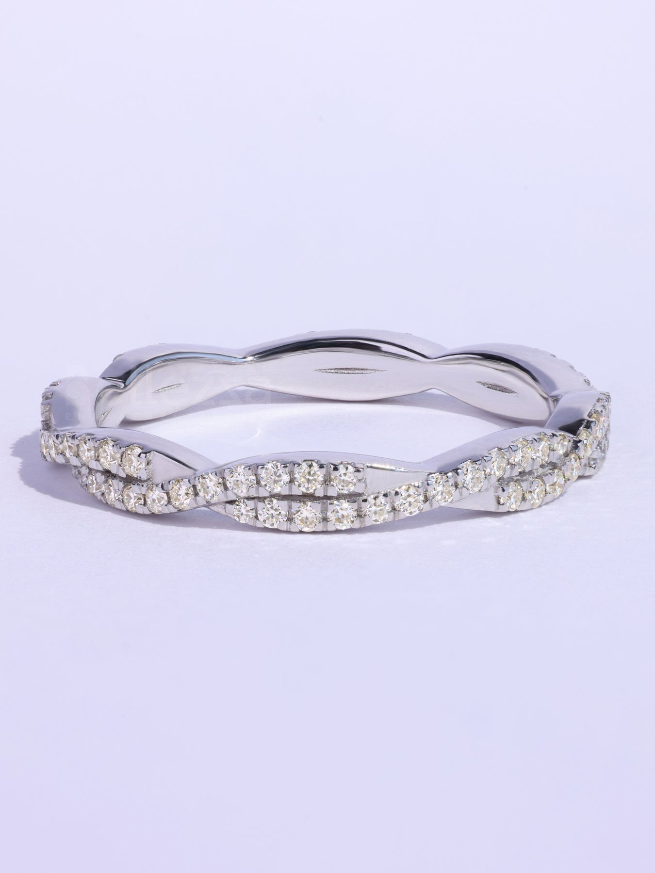 Round Cut Diamond Twisted Pave Setting Wedding Band