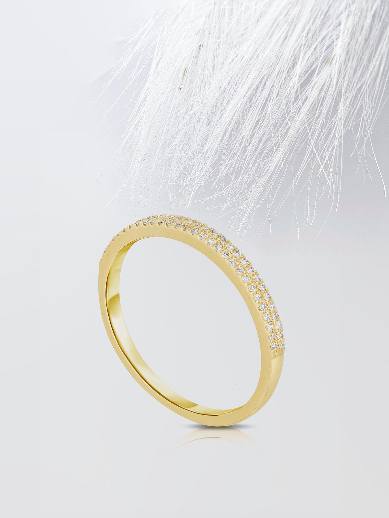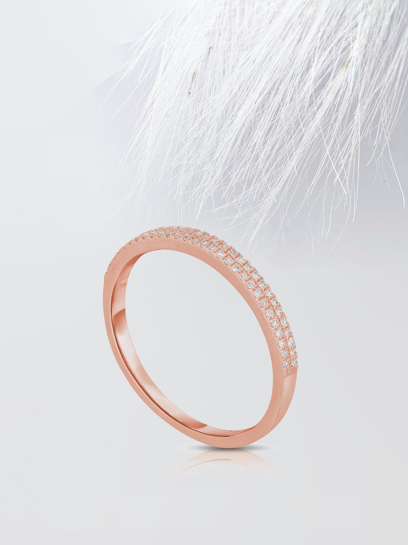 Round Cut Double Row Pave Stackable Diamond Wedding Band