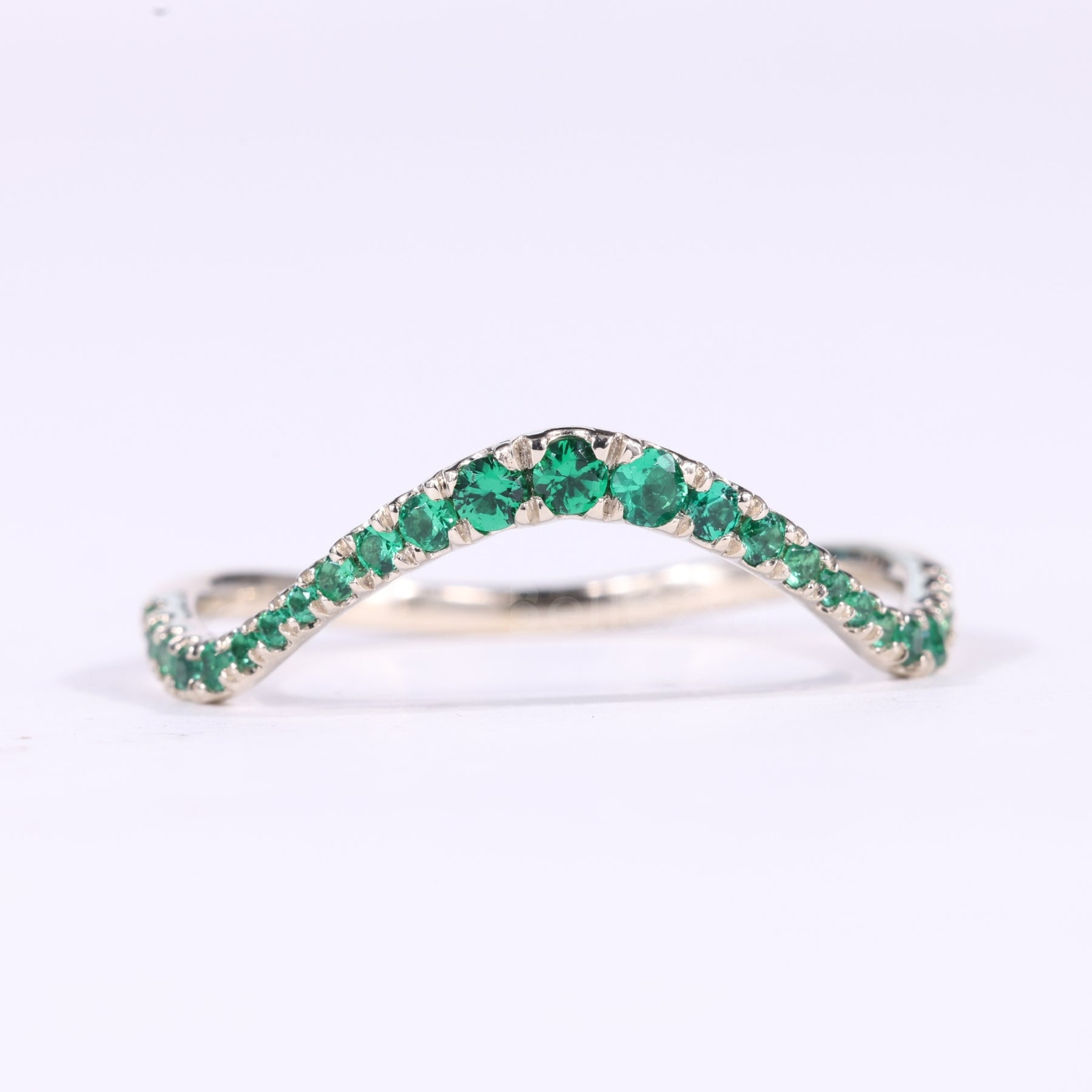 Round Cut Greem Gemstone Curved Moissanite Wedding Band