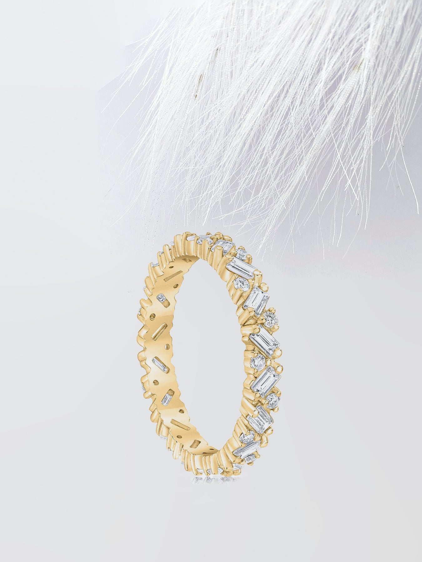 Round & Emerald Cut Cluster Diamond Wedding Band For Women