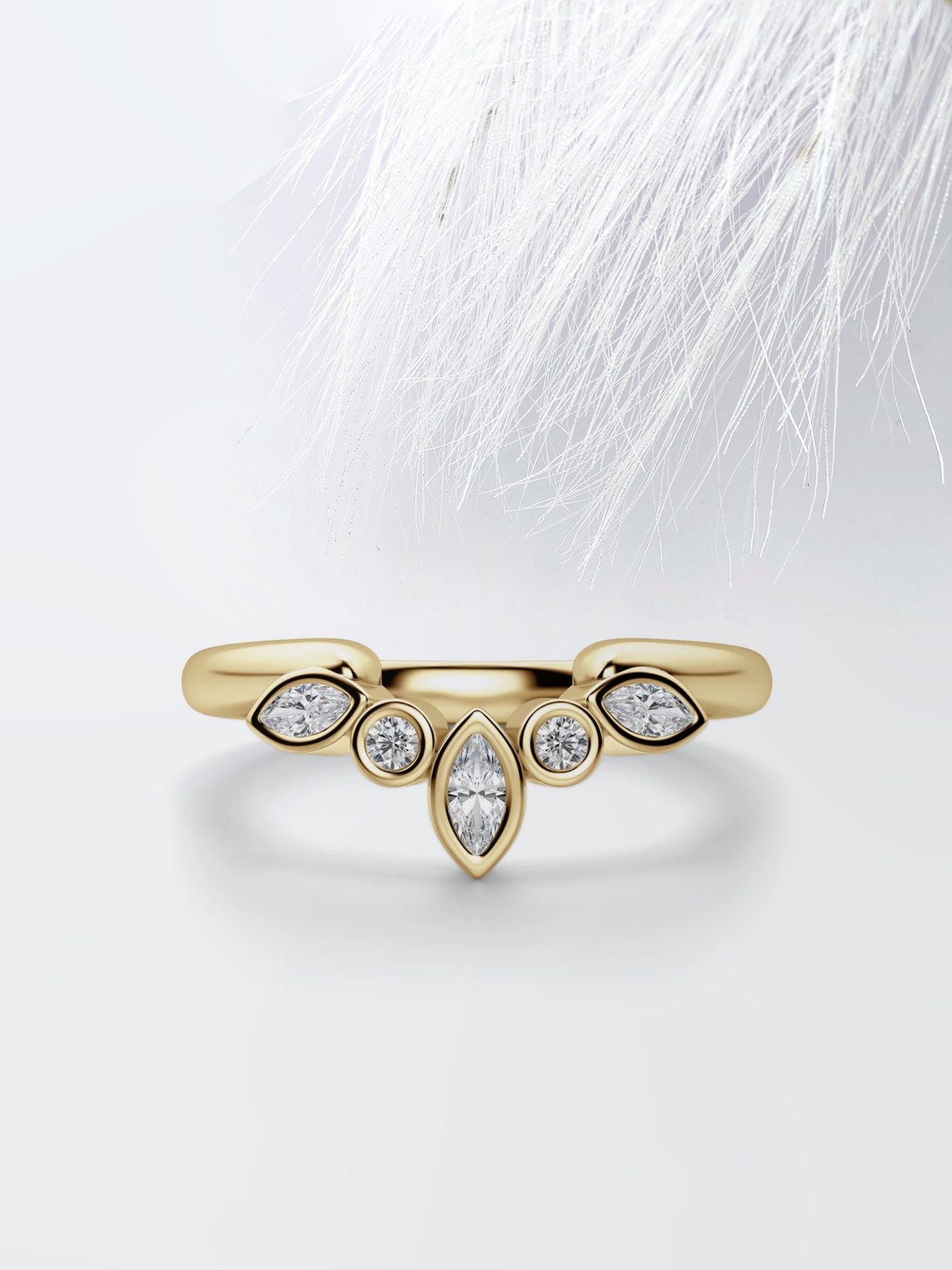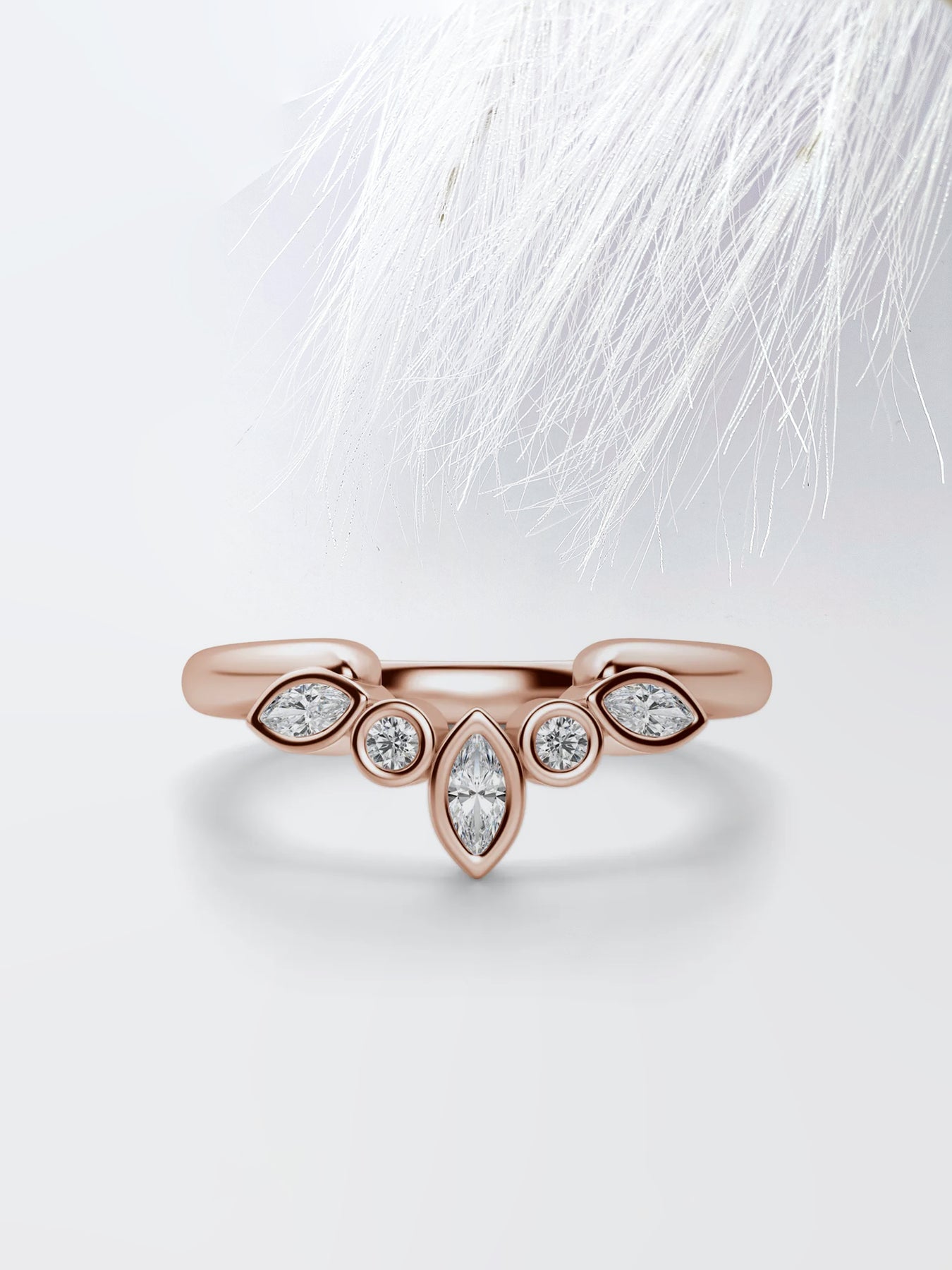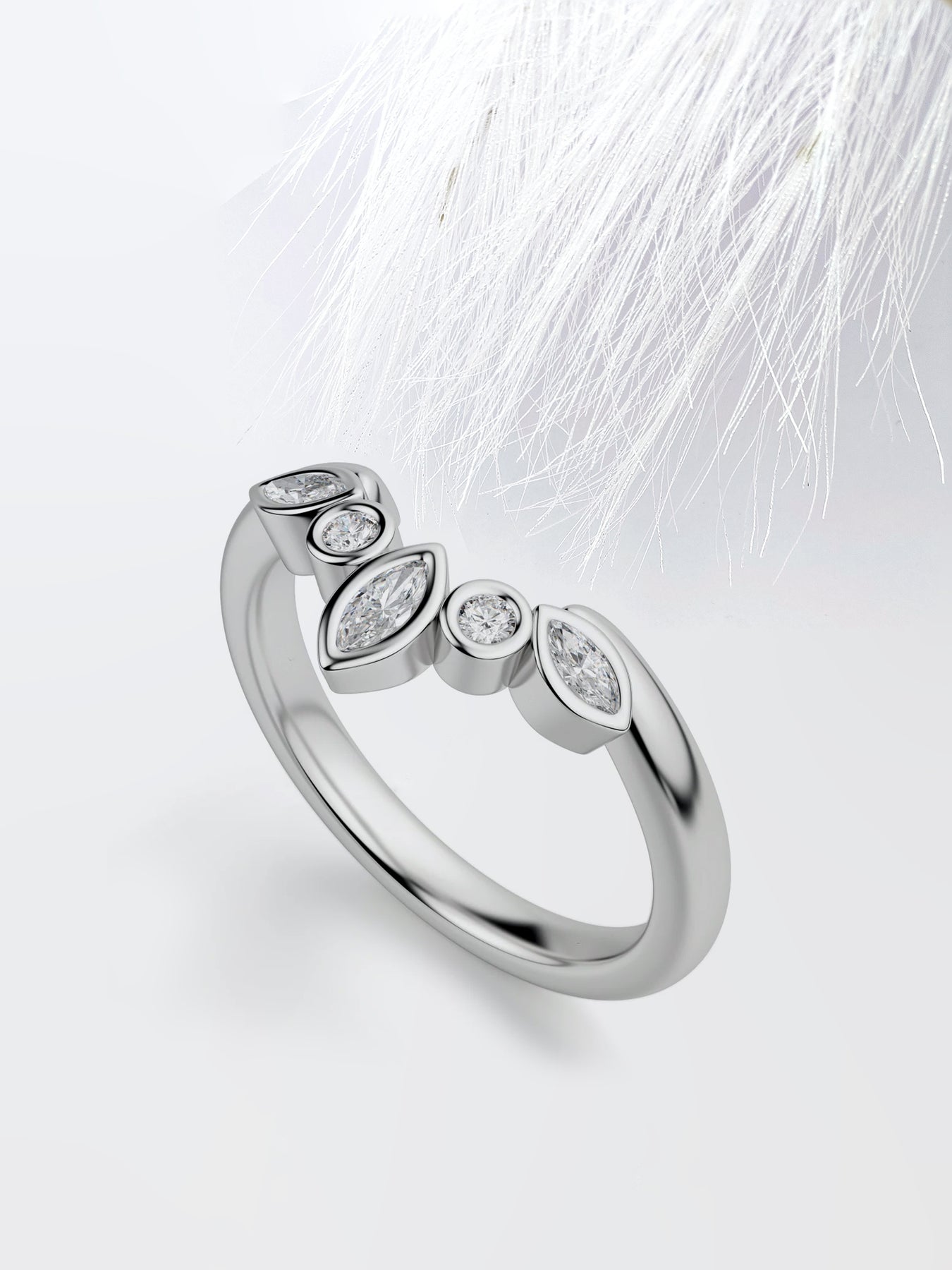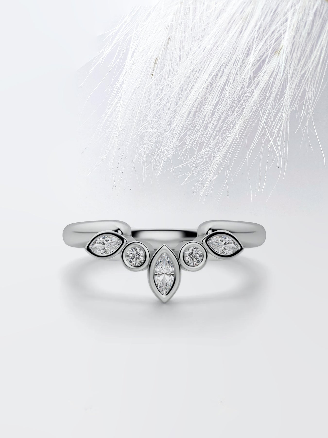 Round & Marquise Cut Curved Diamond Wedding Band For Women