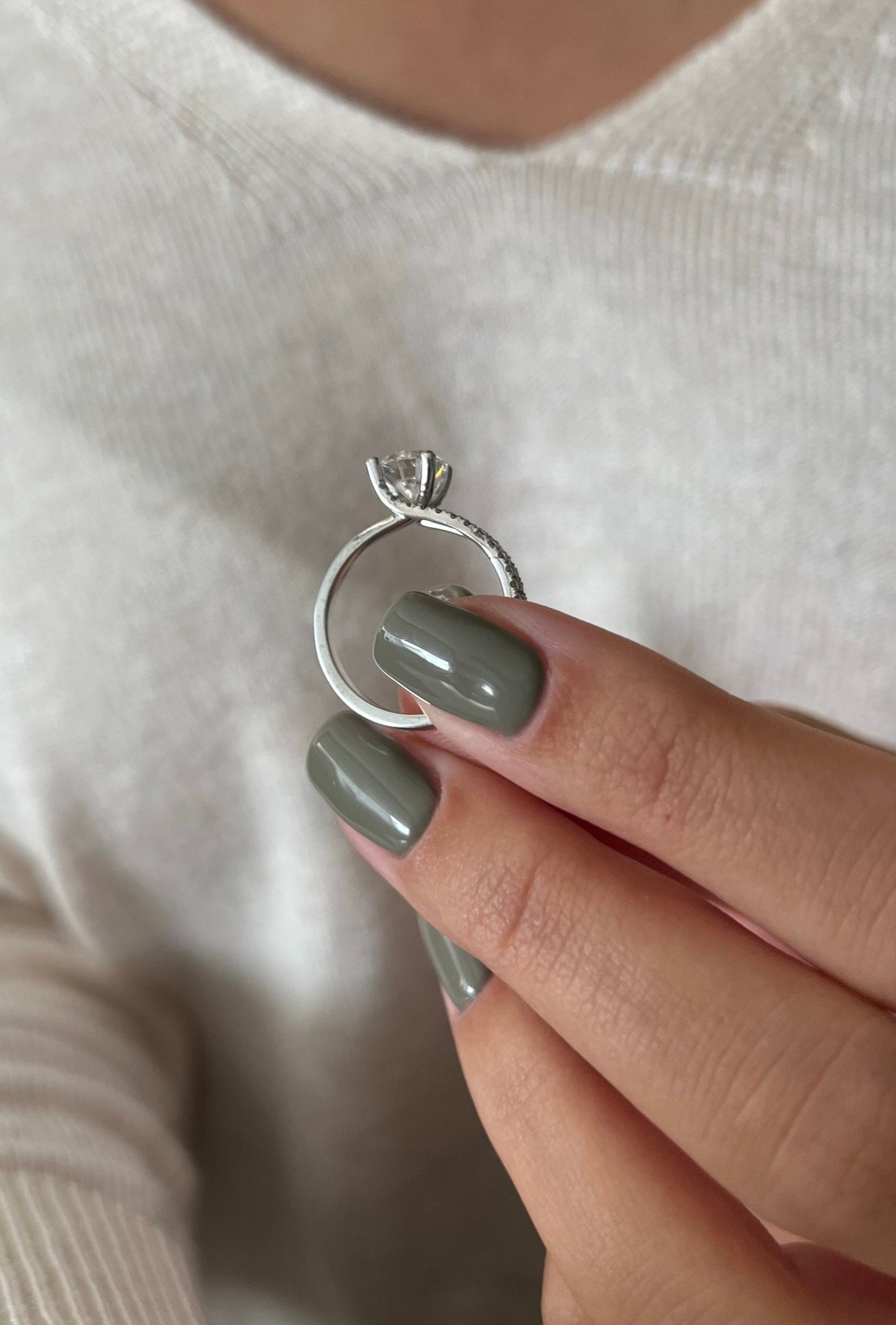 ✥ Celebrate your love with the delicate elegance of the 0.1 CT Round Cut Solitaire Pave Moissanite Engagement Ring. The dainty round-cut moissanite at the center exudes brilliance, perfectly highlighted by the classic solitaire setting. The band, adorned with pave-set moissanite accents, adds a touch of sparkle and sophistication, enhancing the overall radiance of the ring. This design is a beautiful blend of simplicity and luxury, making it an ideal symbol of a love that is pure, timeless, and exquisitely charming.