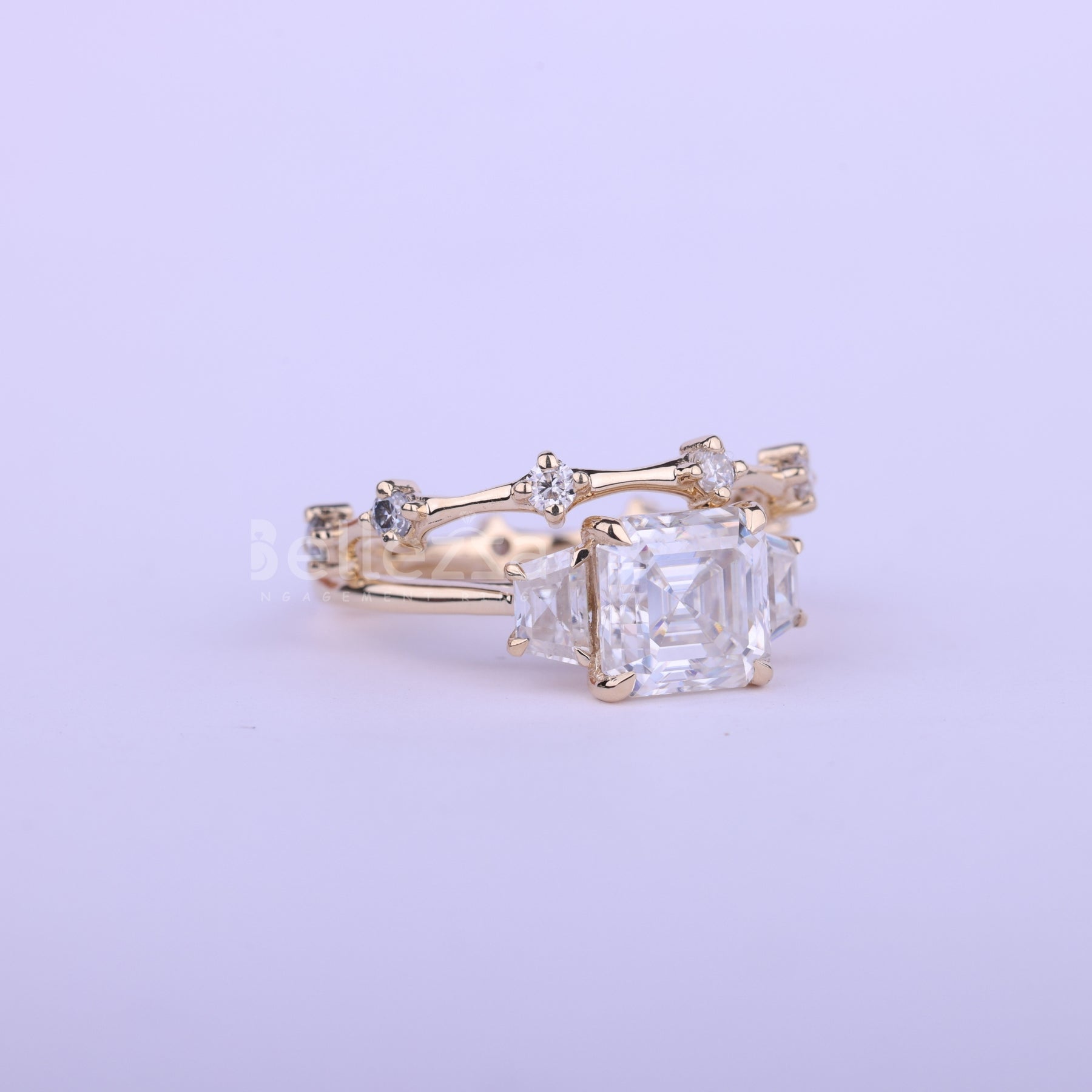 1.0CT Asscher Cut Three Stone Moissanite Bridal Ring Set