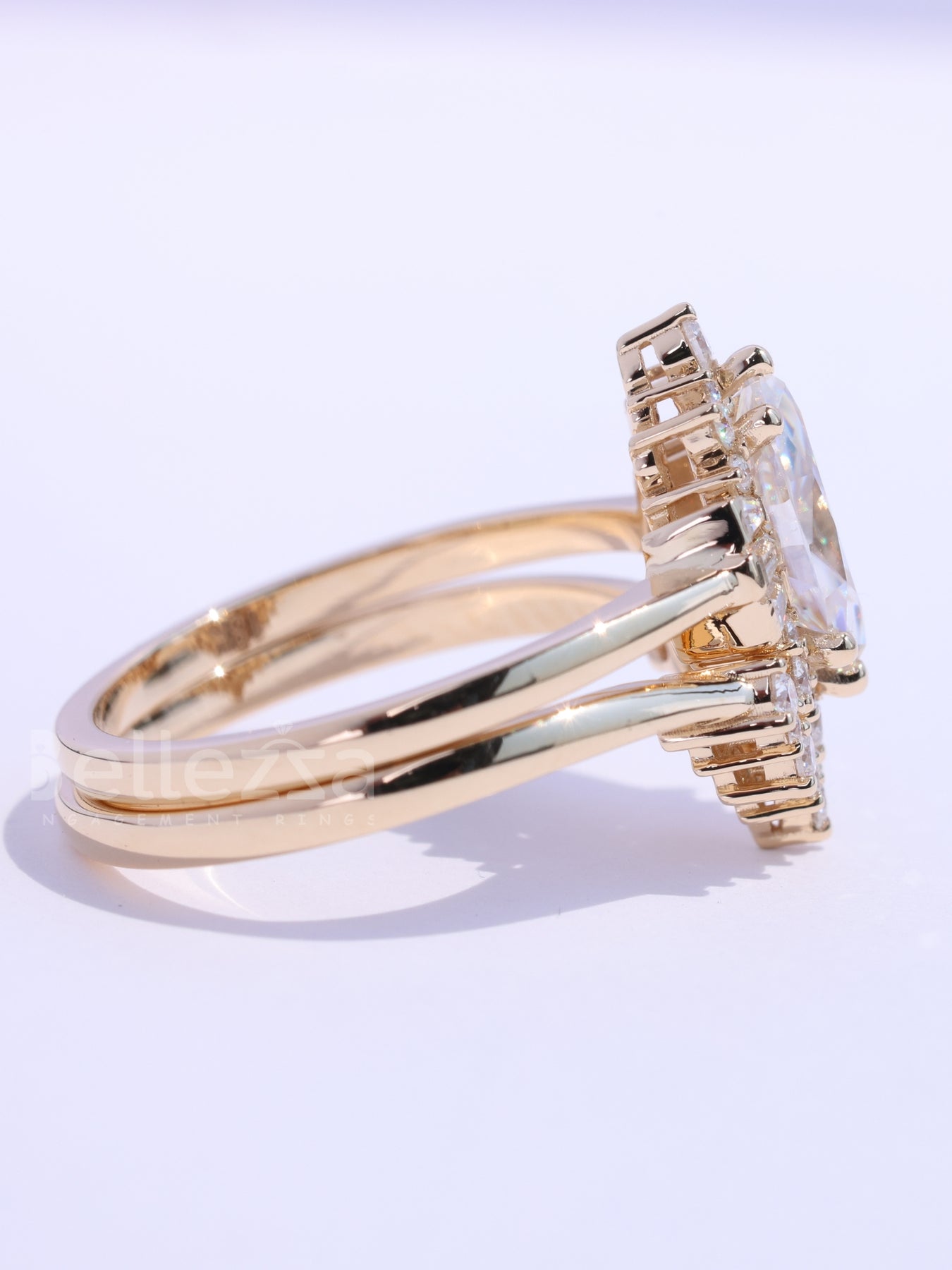 1.0CT Marquise Cut Cluster Diamond Moissanite Bridal Ring Set
