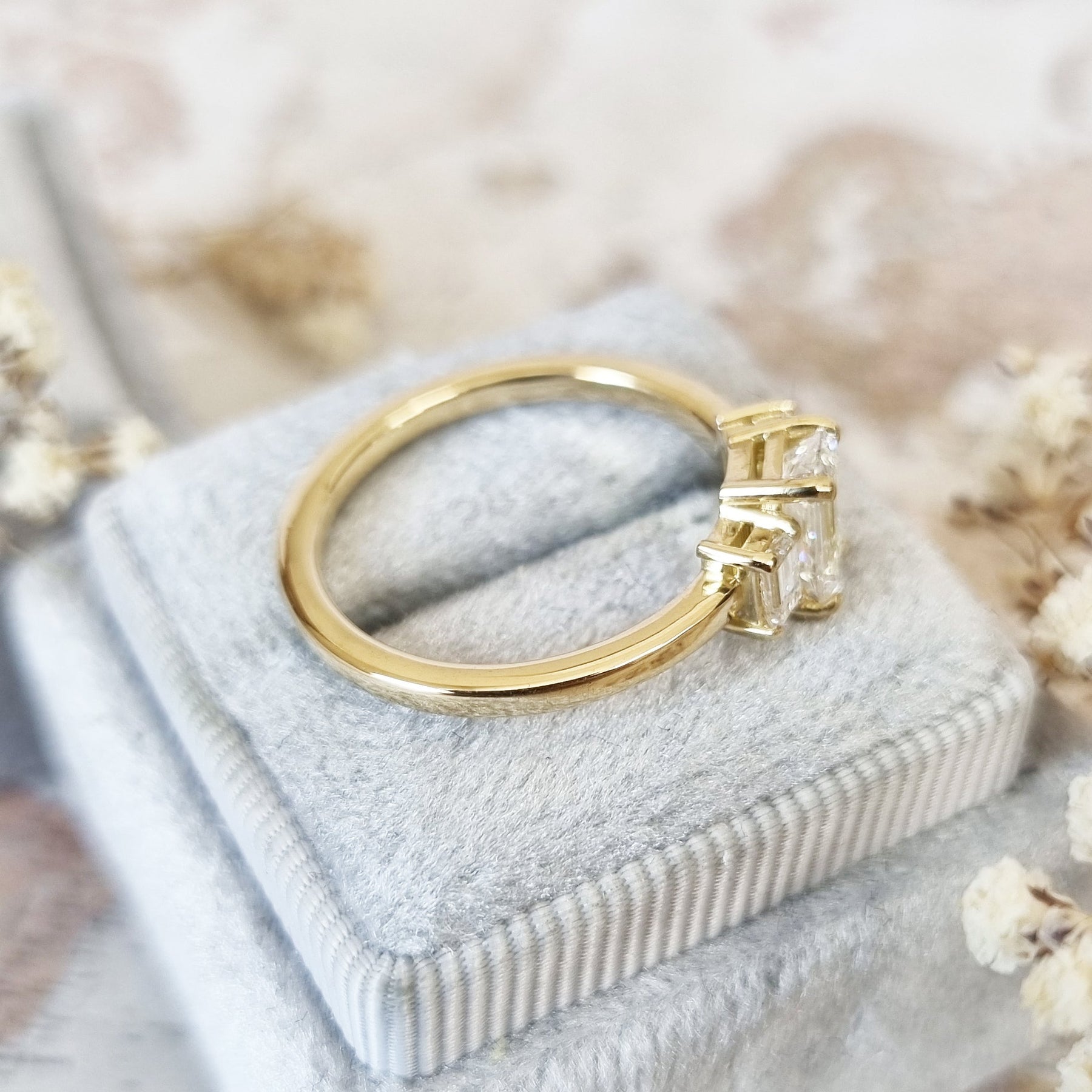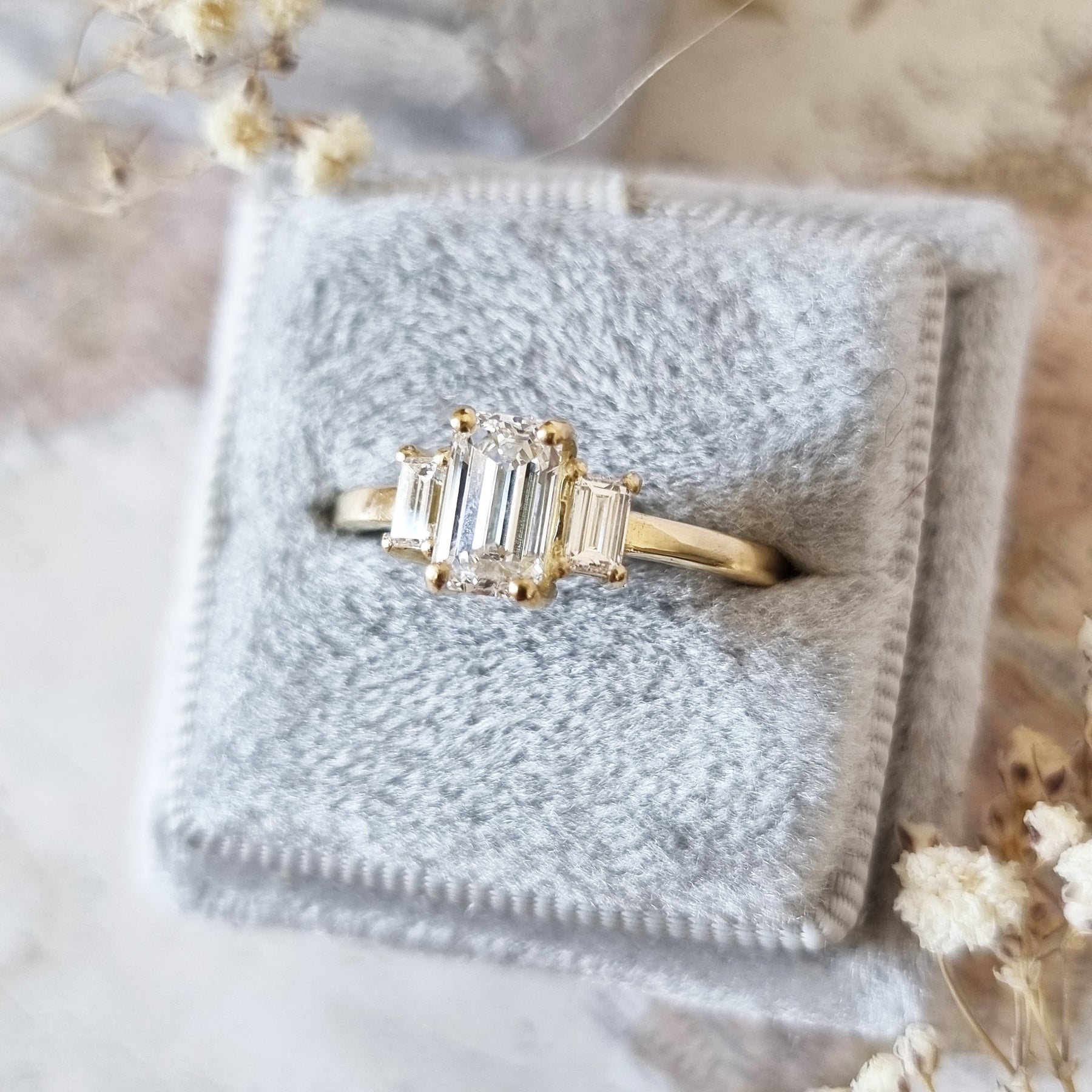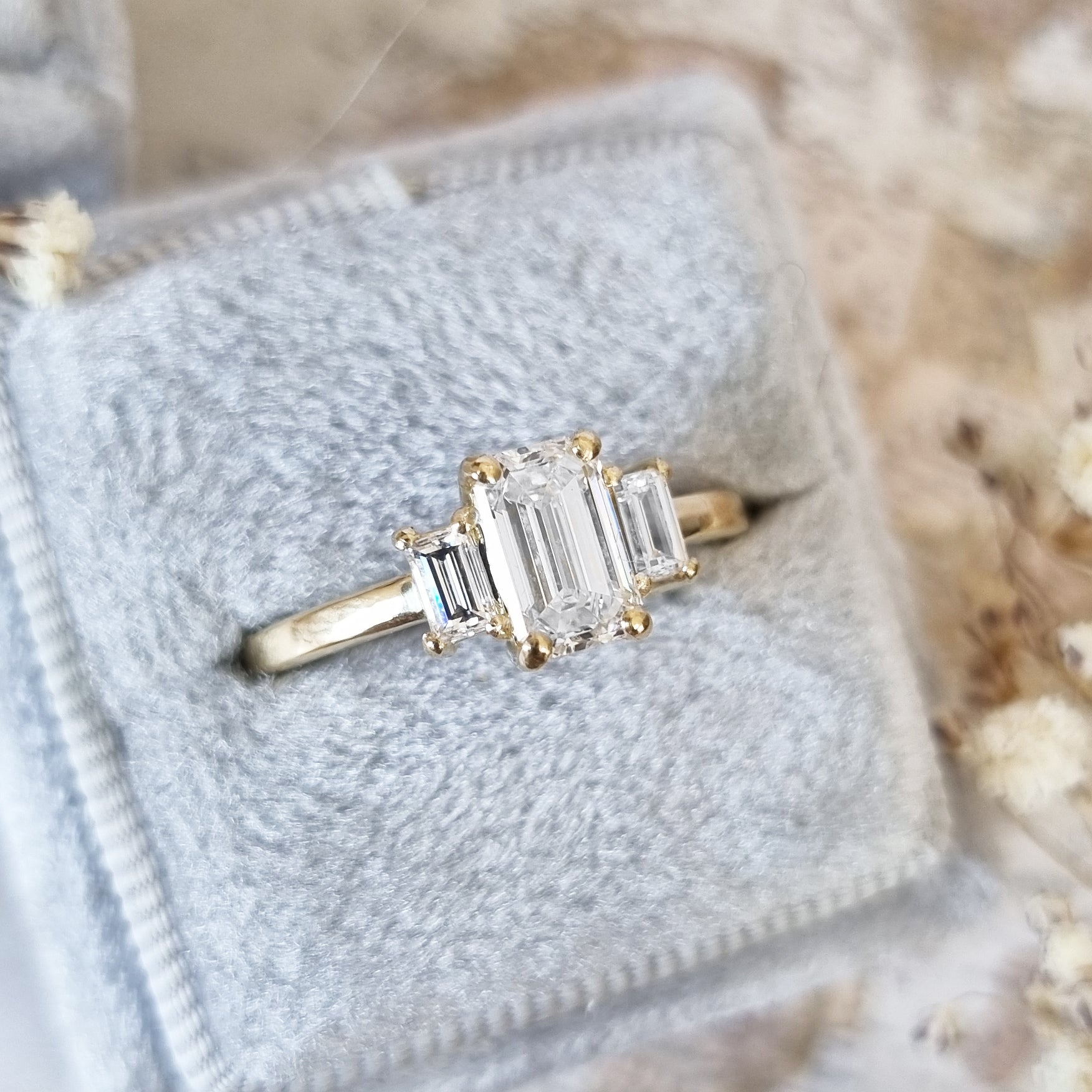 1.10 CT-3.10 CT Emerald Three Stone Lab Grown Diamond Engagement Ring