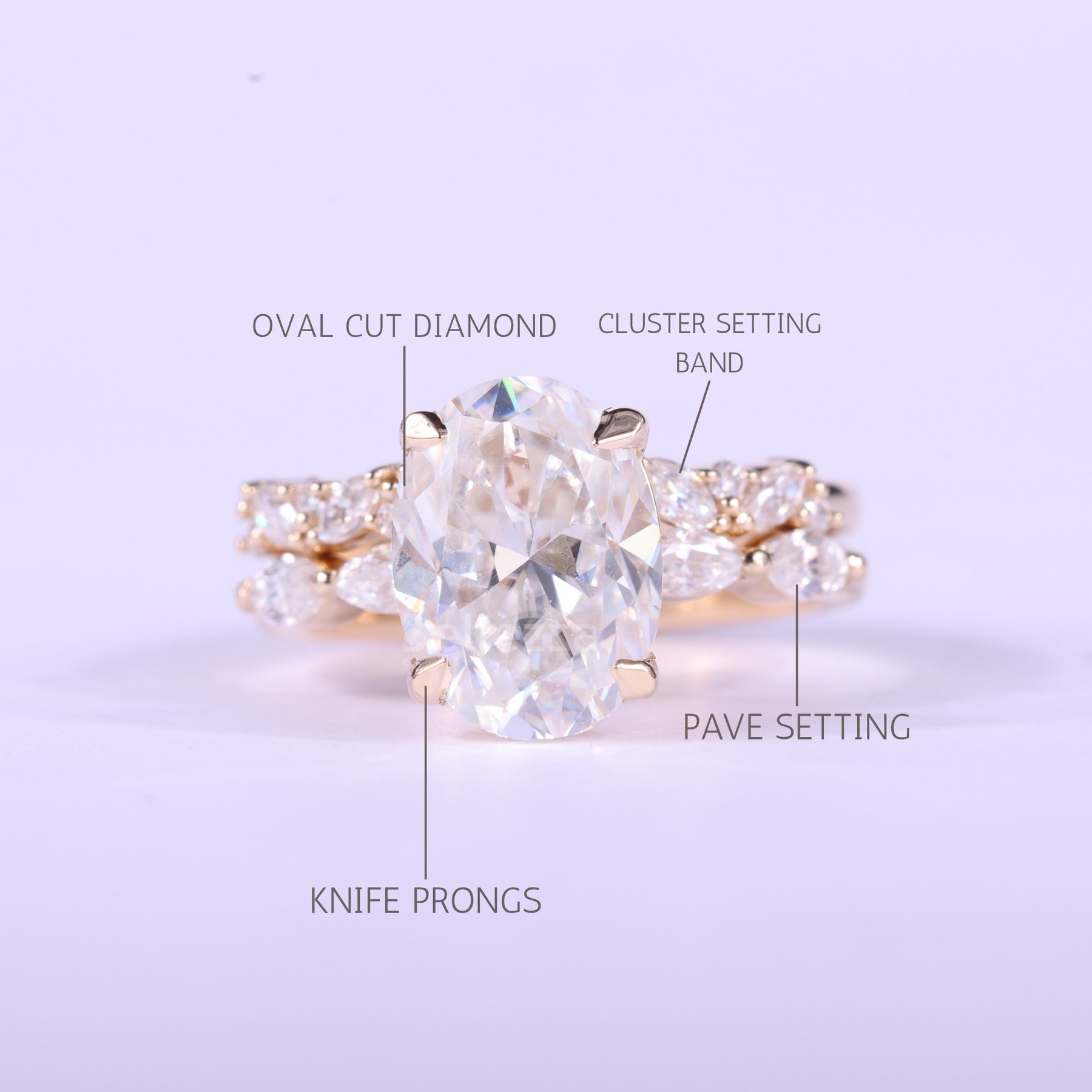 1.50CT Oval Cut Cluster Pave Setting Moissanite Bridal Ring Set