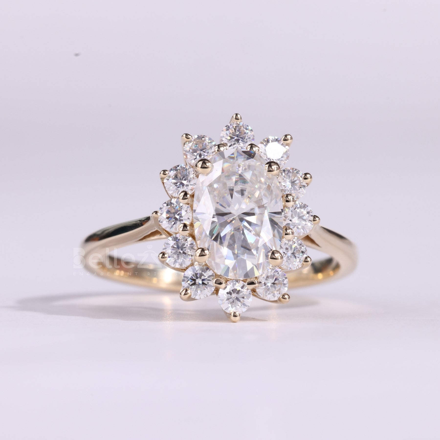 1.50CT Oval Cut Floral Halo Setting Moissanite Engagement Ring