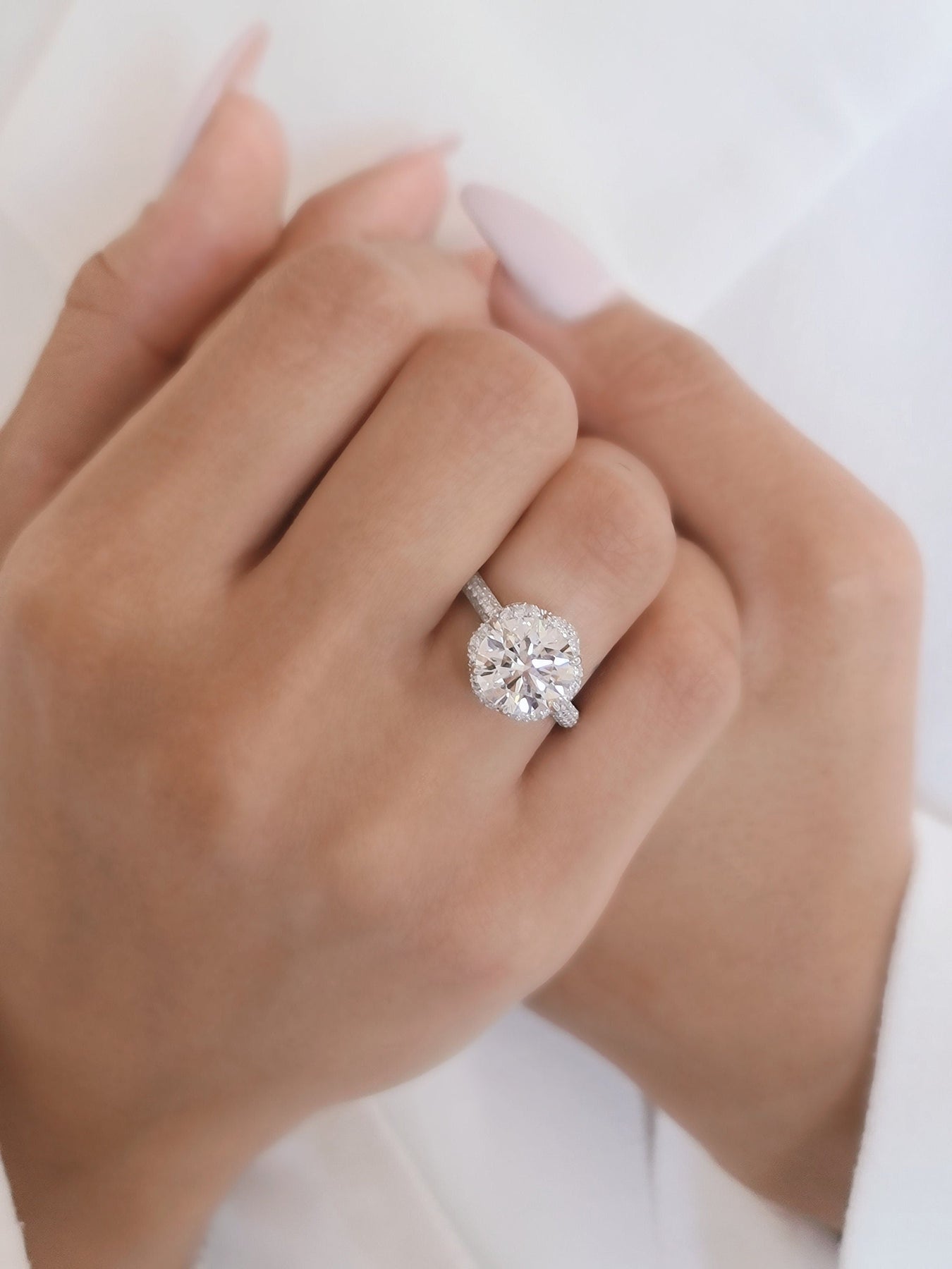 1.0-3.0 CT Round Cut Hidden Halo Style Lab Grown Diamond Engagement Ring