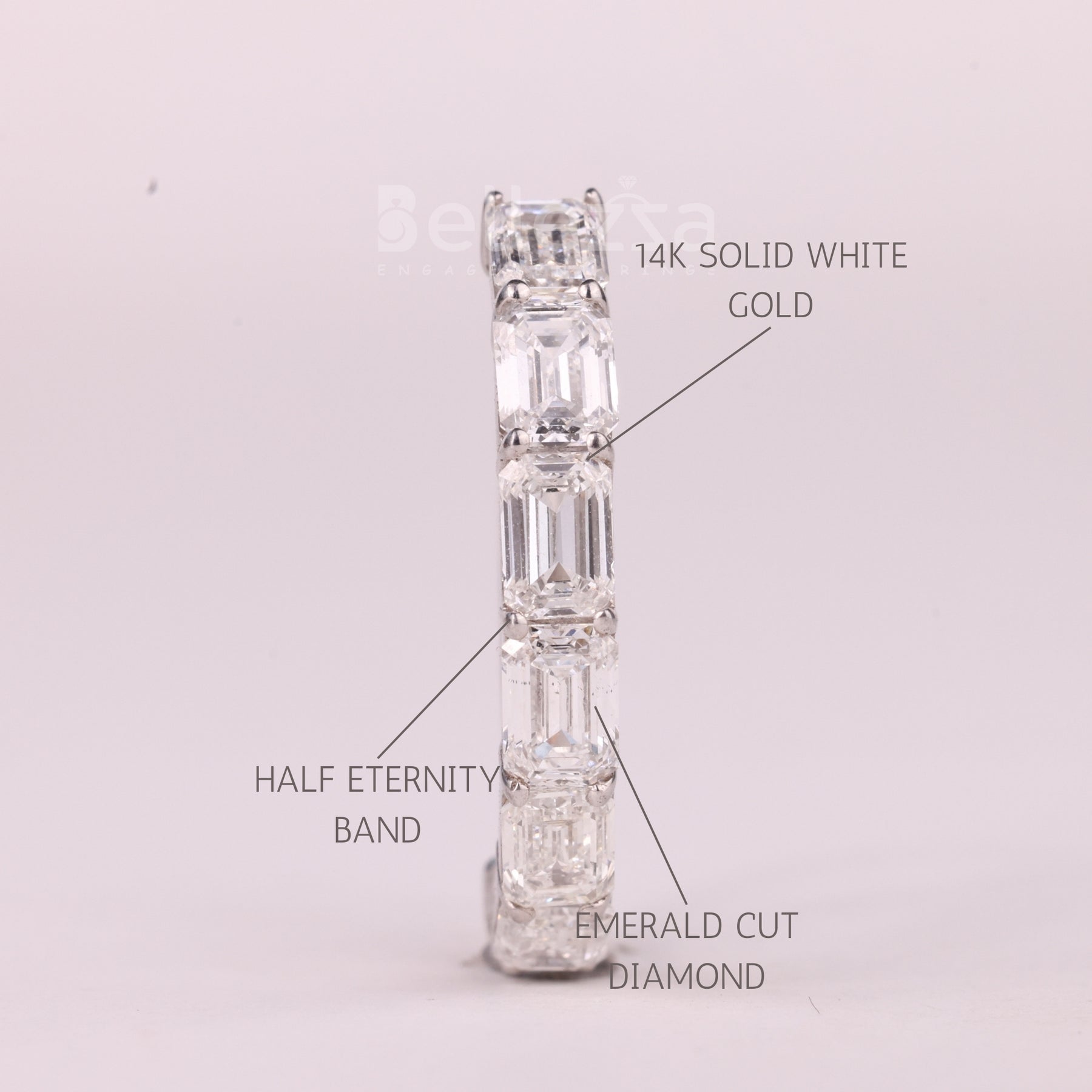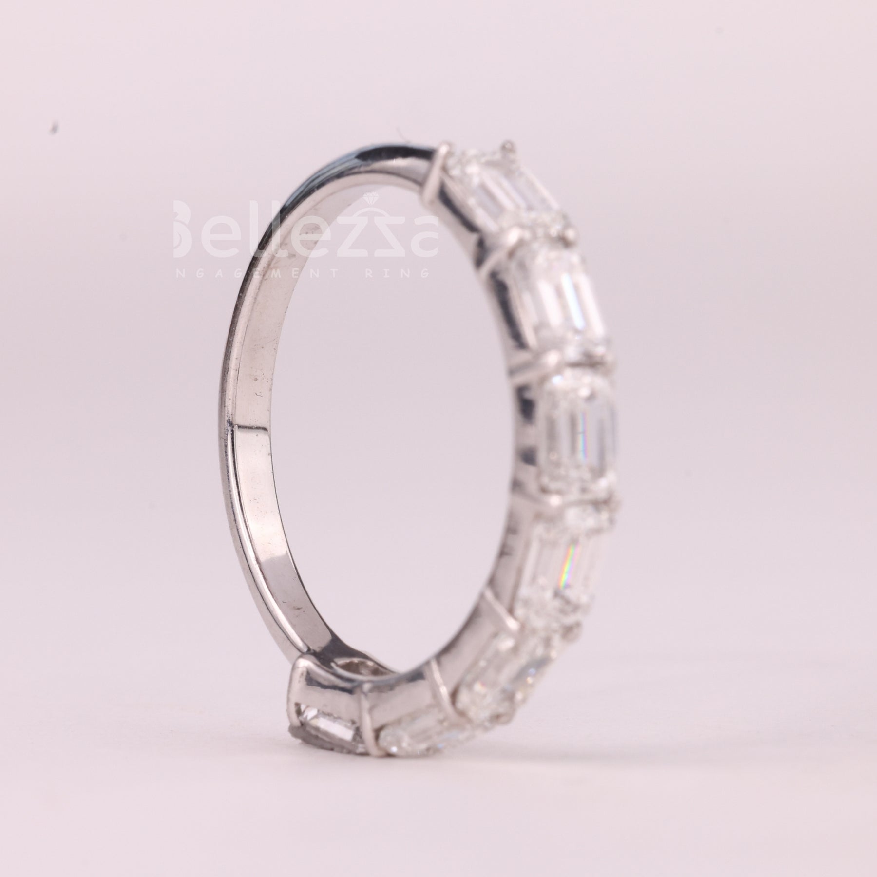 East-West Emerald Cut Half Eternity Moissanite Wedding Band