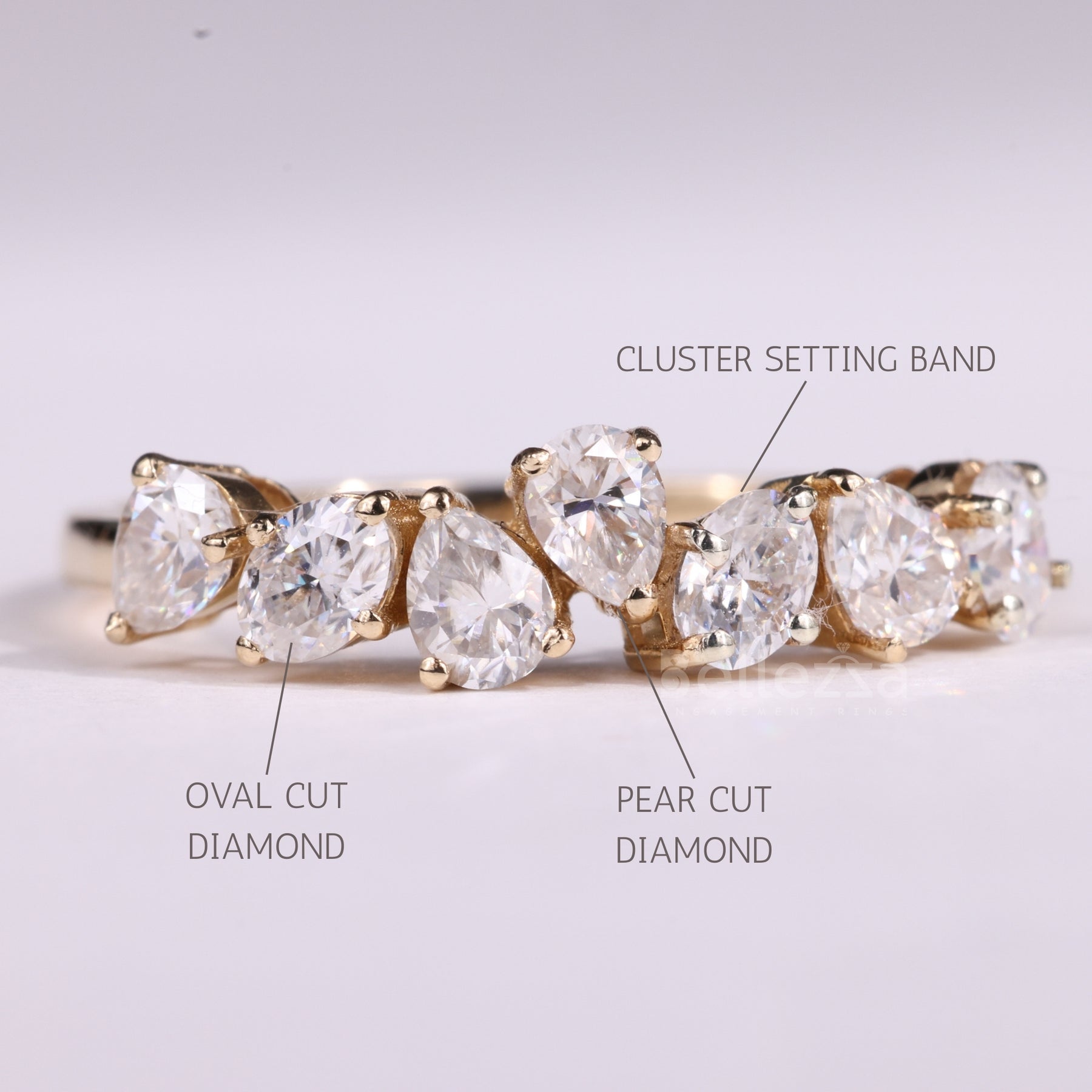 Pear & Oval Cut Cluster Diamond Moissanite Wedding Band