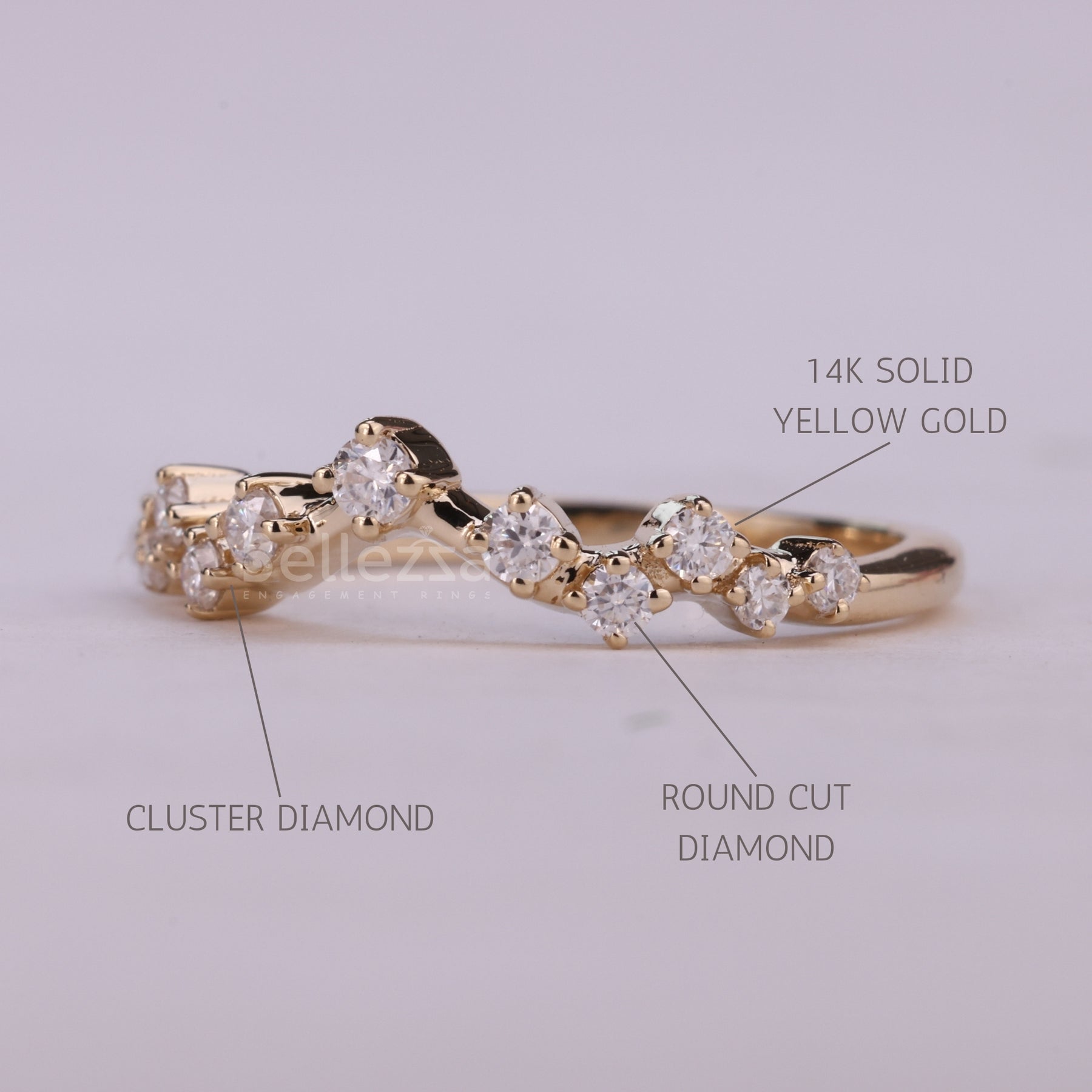 ✥This elegant image showcases the Round Cut Cluster Diamond Moissanite Wedding Band, a timeless choice for brides seeking sparkle and sophistication. Featuring dazzling round cut cluster diamonds, the band delivers continuous brilliance and a captivating focal point. Crafted as a premium moissanite wedding band, it offers diamond-like radiance with ethical and affordable appeal. Perfect for brides who love classic elegance with a modern touch, this band balances glamour with everyday wearability. Its versatile design complements any engagement ring beautifully. Celebrate your love with this trending, radiant wedding band that exudes charm and timeless elegance.