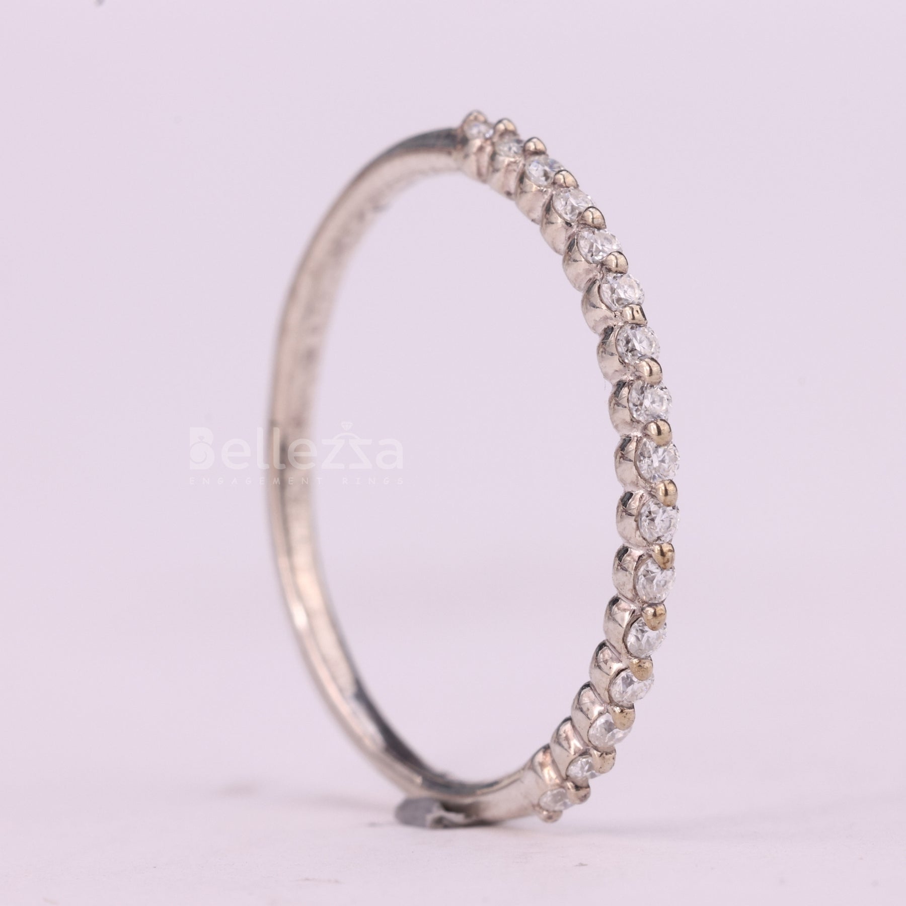 ✥The image is showing a Round Cut Half Eternity Moissanite Pave Setting Wedding Band, a timeless piece that combines elegance, sparkle, and modern sophistication. Featuring brilliant round cut moissanite stones set in a delicate pave setting, this half eternity band ensures radiant sparkle along the finger. The luxurious moissanite wedding band offers durability, brilliance, and affordability compared to traditional diamonds. Expertly crafted, it balances comfort with style, making it perfect for everyday wear or stacking with other rings. A refined choice for brides who desire elegance, romance, and lasting charm. This band symbolizes everlasting love and commitment in a classic yet contemporary design.