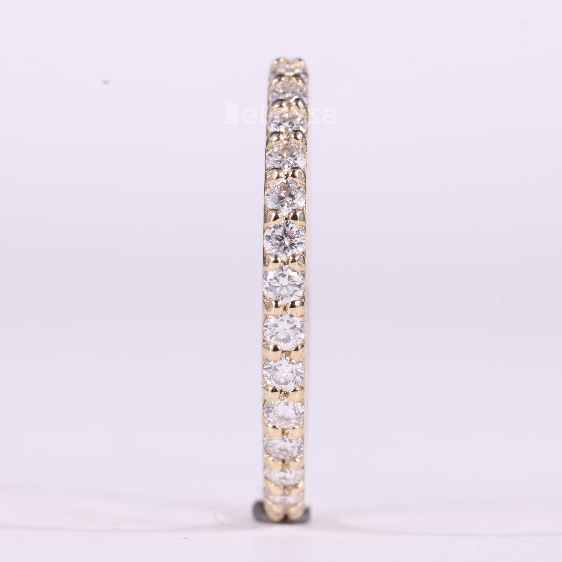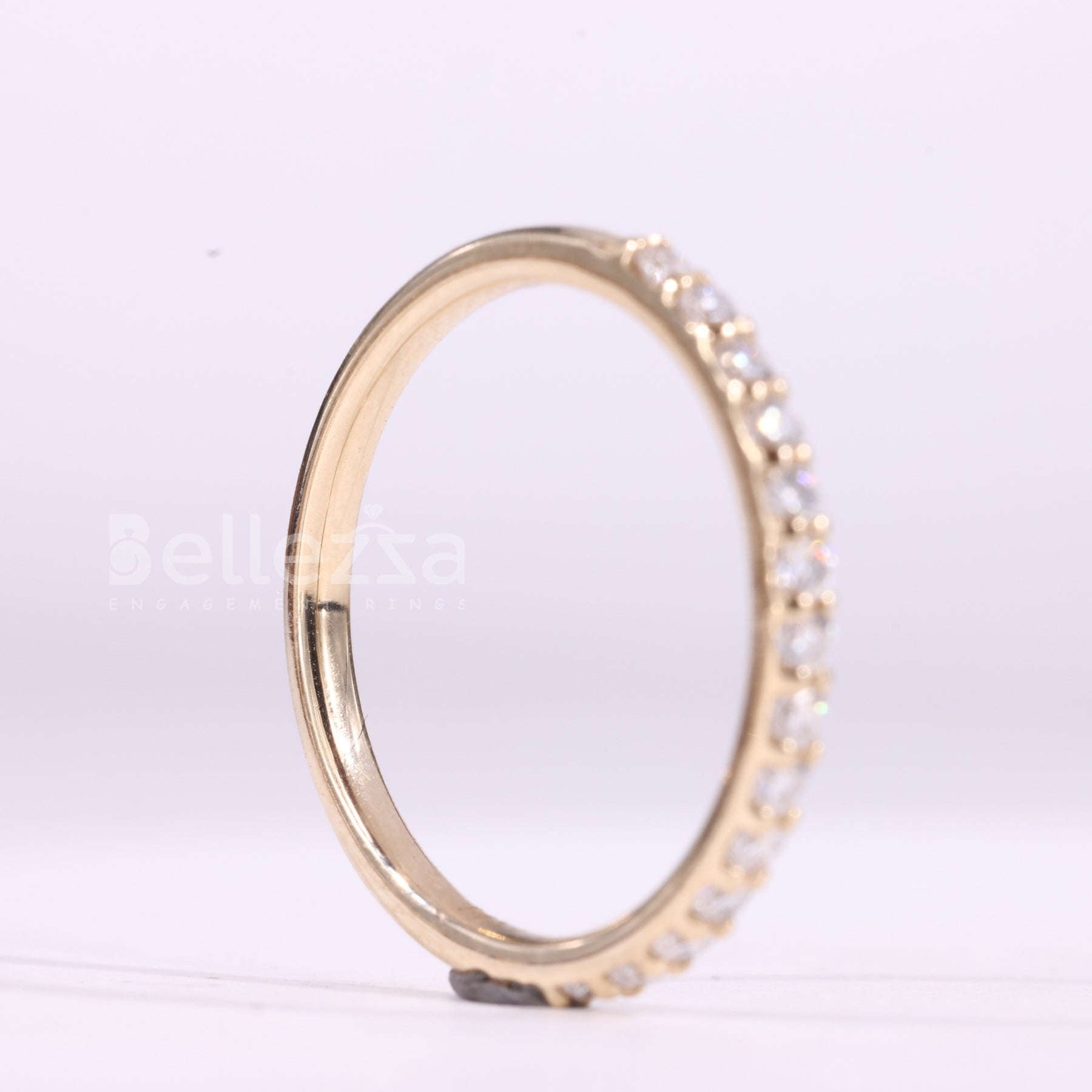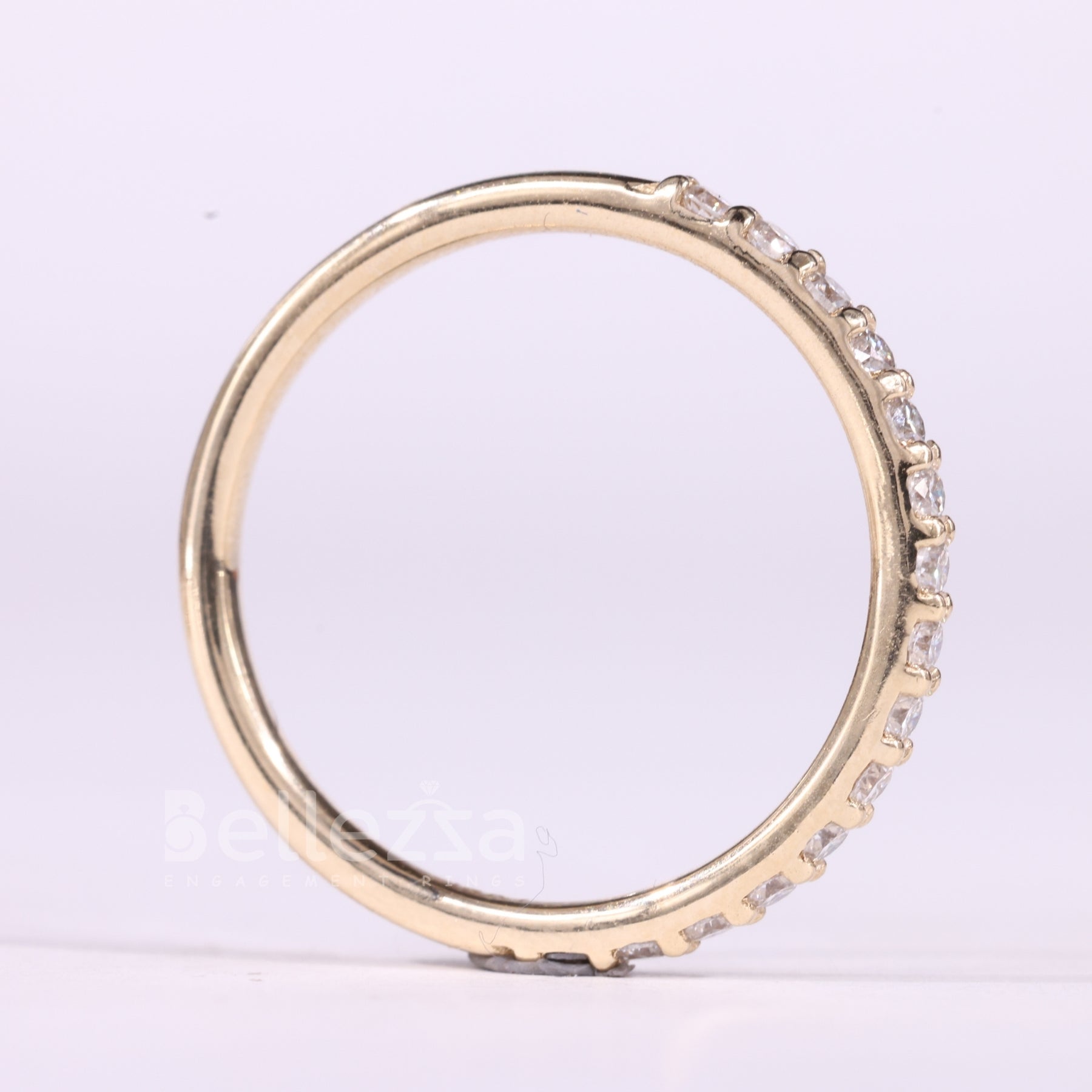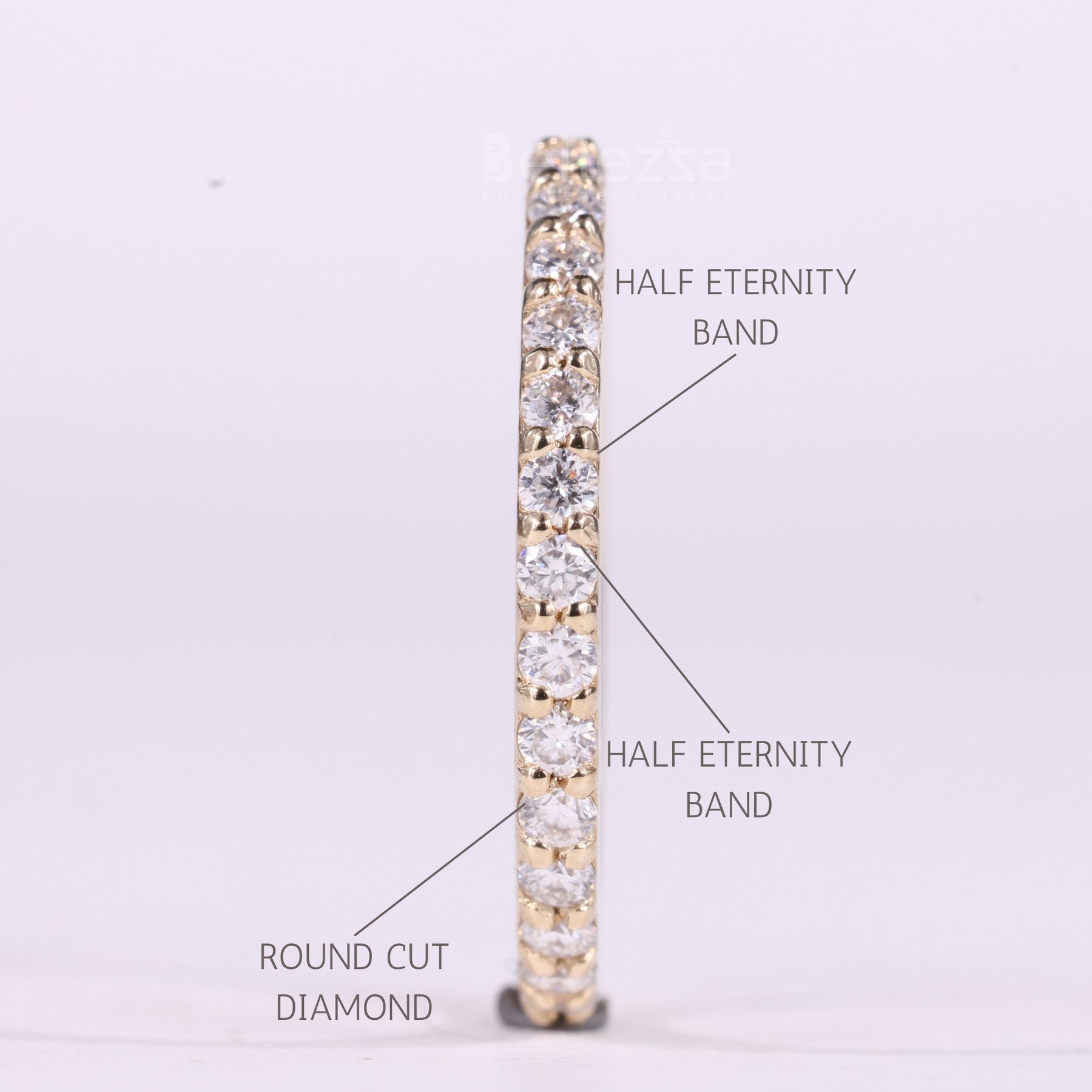 ✥The image is showing a Round Cut Half Eternity Moissanite Wedding Band, designed to radiate elegance and timeless sparkle. Featuring brilliant round cut stones, it captures light beautifully for maximum brilliance. The classic half eternity design symbolizes everlasting love and commitment. Expertly crafted as a luxurious moissanite wedding band, it combines sophistication, durability, and dazzling sparkle. This stunning wedding band ensures a radiant presence on any special occasion. With meticulous craftsmanship and a polished finish, it embodies elegance, romance, and enduring beauty. Celebrate your love with a band that is both unique and unforgettable.