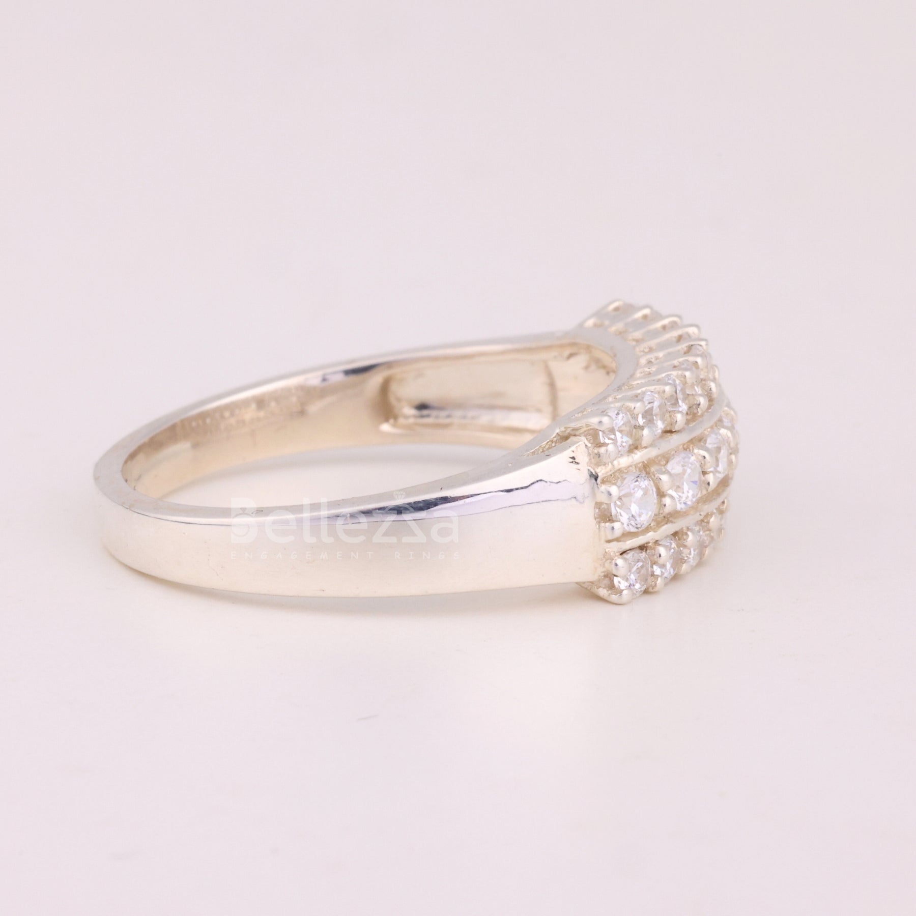 The image above showcases our stunning Round Cut Three Row Pave Setting Moissanite Engagement Ring, a luxurious design that radiates brilliance and elegance. Featuring a sparkling Round Cut center stone, this ring is elevated with a dazzling Three Row Pave Setting along the band for unmatched sparkle and sophistication. Crafted with premium Moissanite, it delivers diamond-like brilliance while remaining eco-friendly and durable. Its sleek and polished design highlights the centerpiece beautifully, making it a sophisticated Engagement Ring for proposals, anniversaries, or milestone celebrations. Perfect for brides who love timeless beauty with a touch of luxury, this ring embodies romance, style, and superior craftsmanship. Celebrate your love with a radiant creation that captures hearts at first glance.