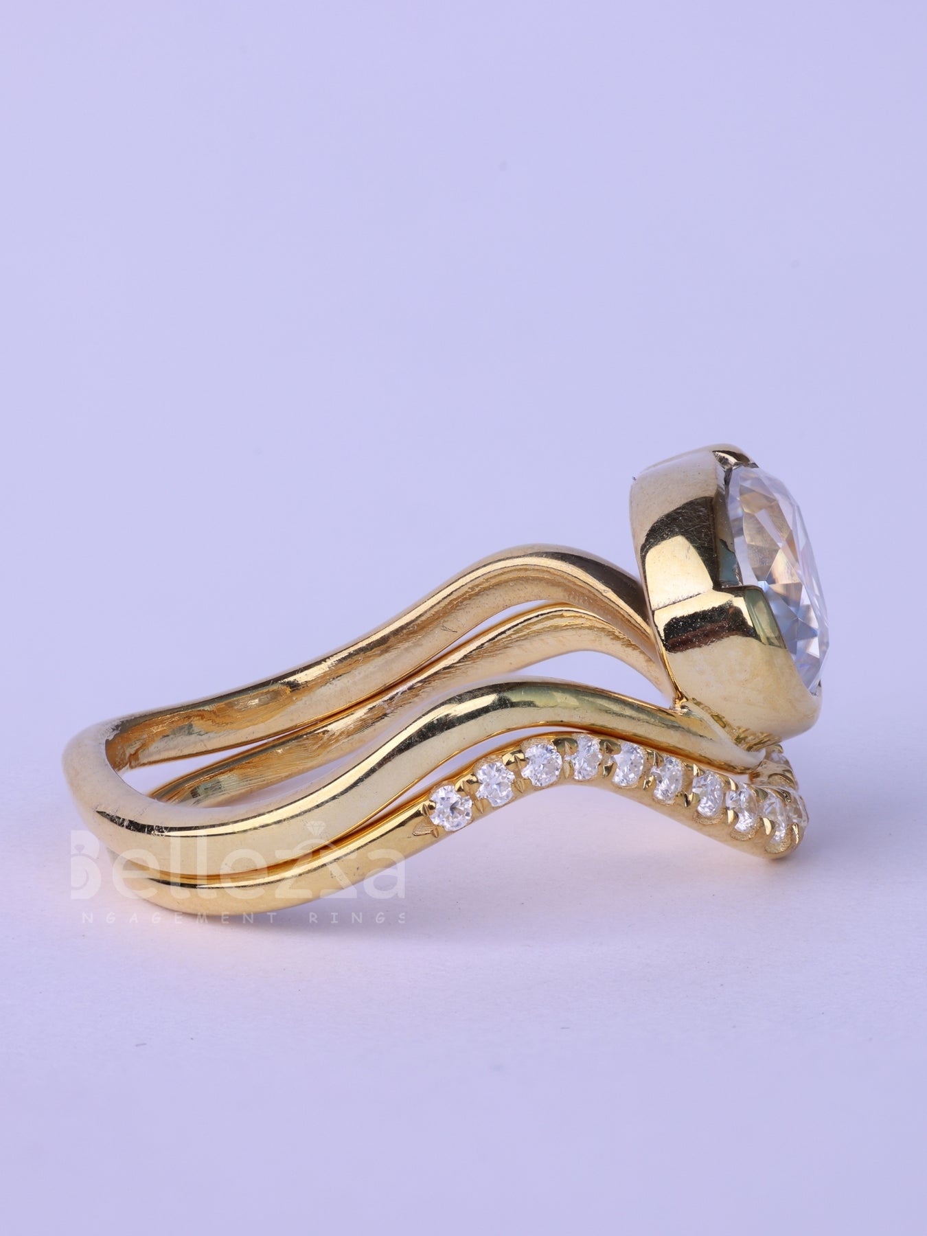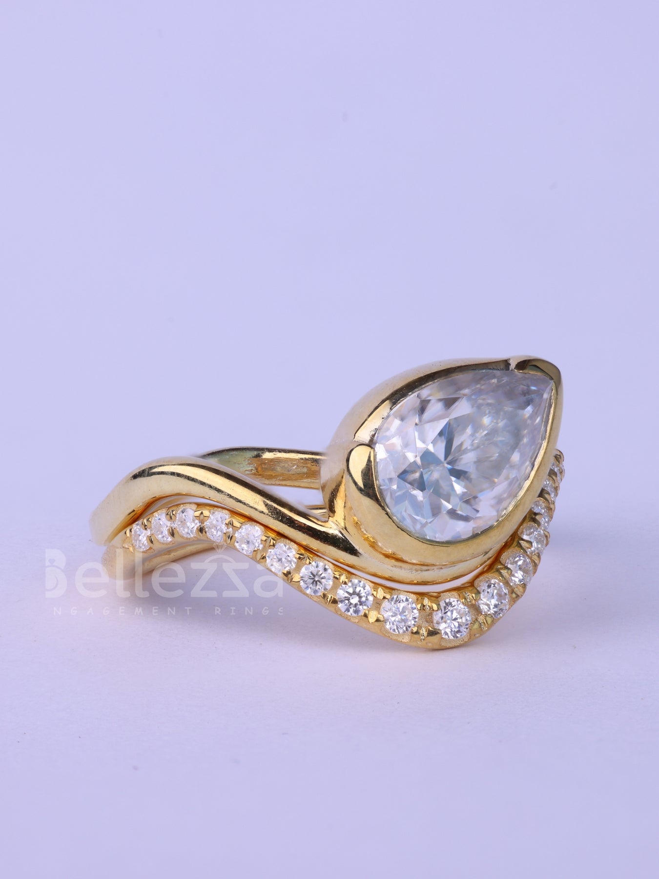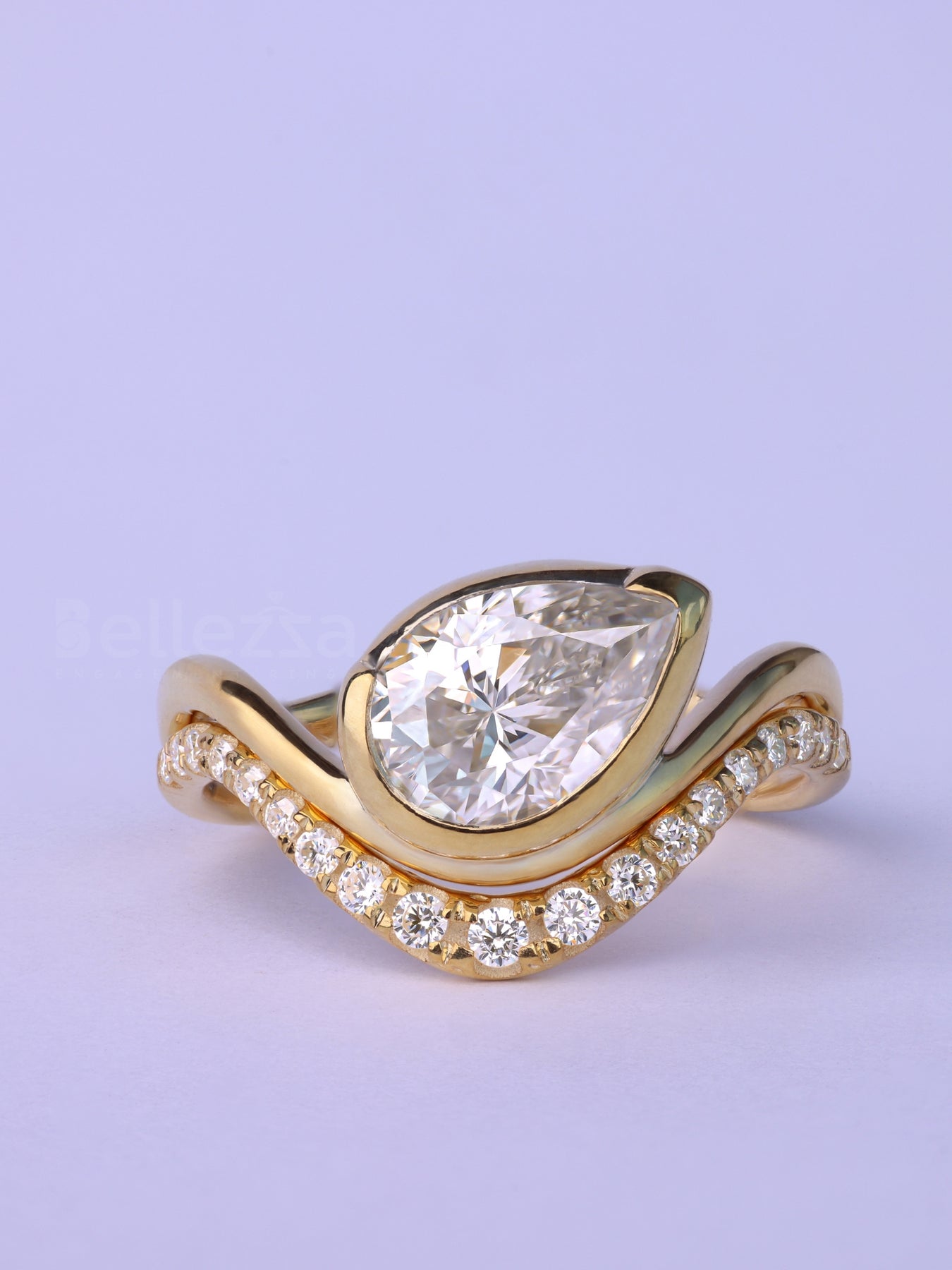 Unique Pear Cut Diamond Curved Moissanite Engagement Ring Set